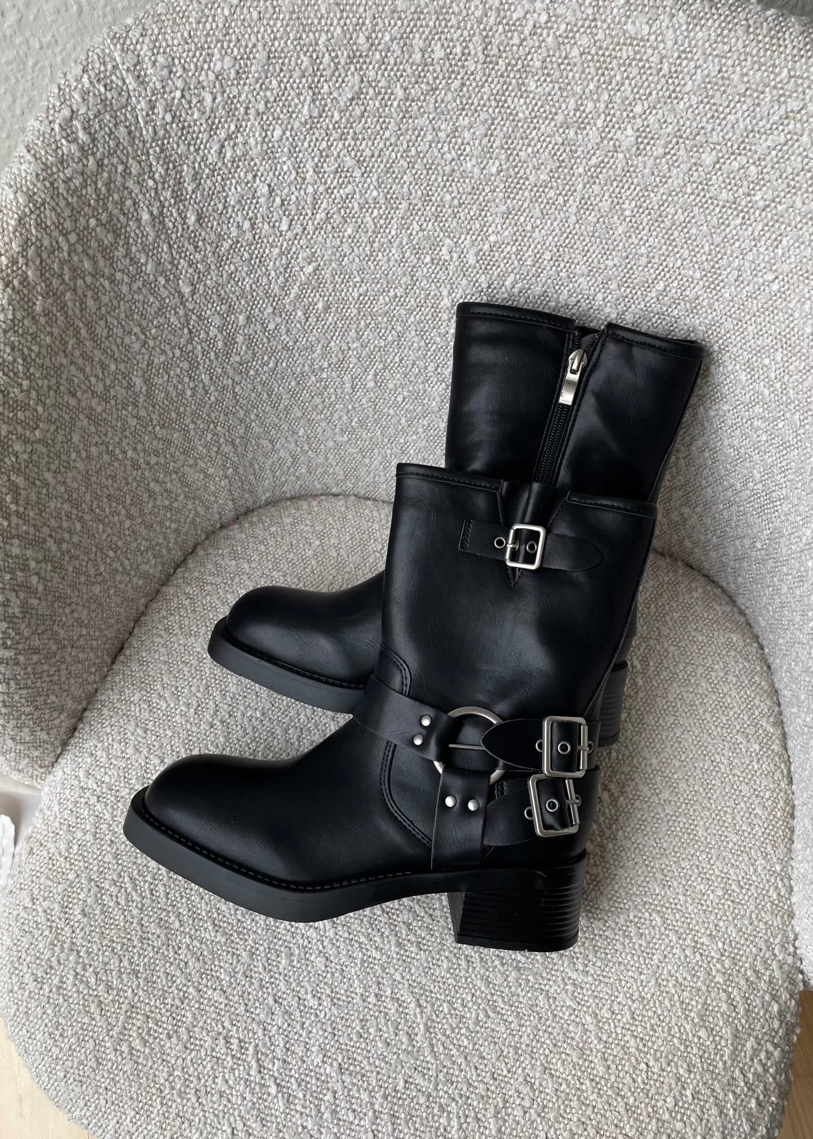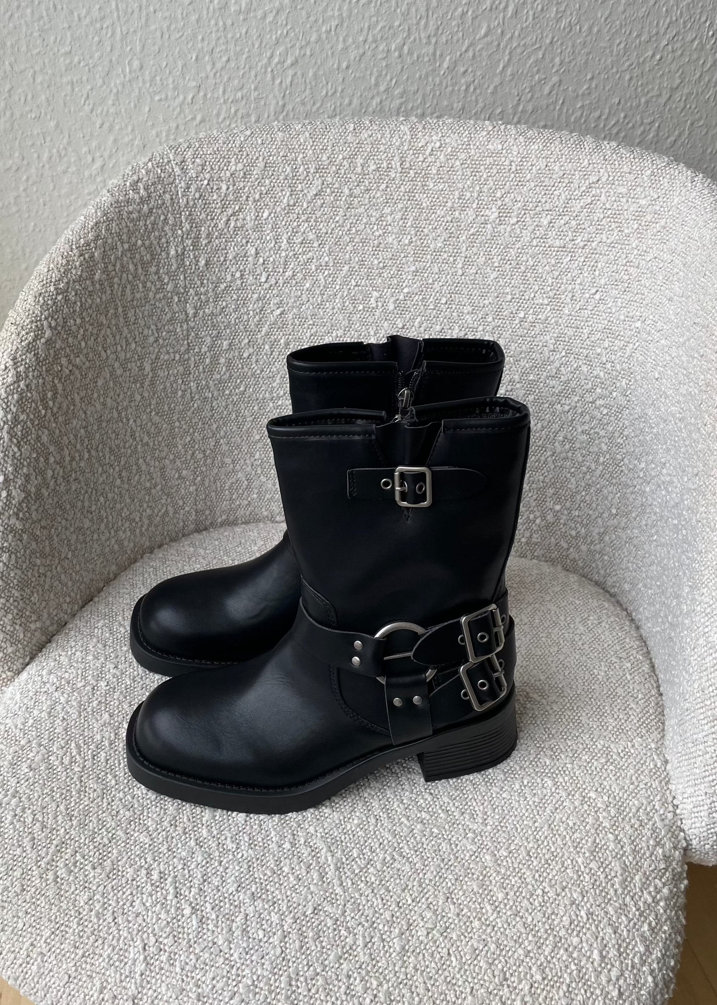 Vores Biker Boots fås med både høj og lav skaft. De lave går til midt på skinnebenet. De har derudover sølvfarvede spænder og nitter, som giver dem et råt udtryk. De passer perfekt til en nederdel🖤☀️