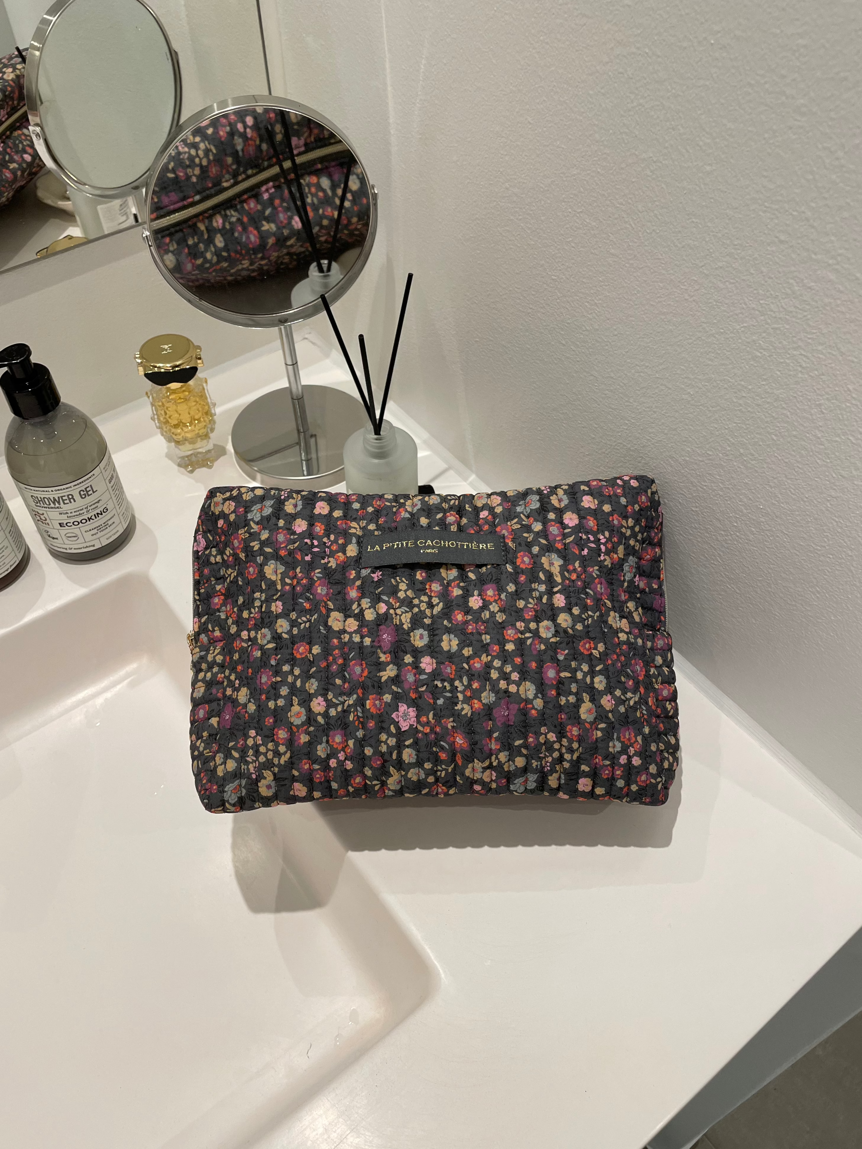 Vores fine Gry Toilettaske er en fin blomstret toilettaske, som er lavet i et blødt materiale. Den har et fint blomstret mønster samt en guld lynlås🌸