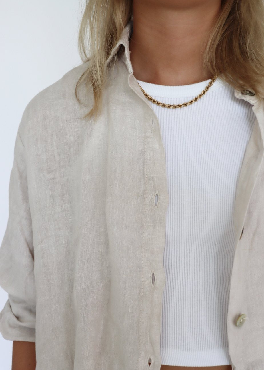 Den fine Hørskjorte er lavet af 100% hør og har knapper hele vejen ned. Skjorten kan derfor bruges både lukket og åbnet☀️