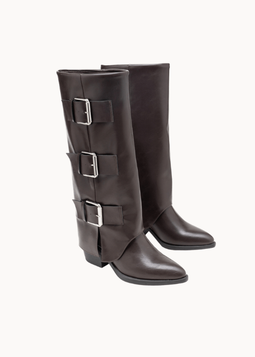 Vores nye Vega Spænde Støvler er høje med et råt og selvsikkert udtryk. De er designet i imiteret læder med dekorative spænder, der giver et råt og trendy twist. Perfekte til dig, der vil have en støvle, som både er stilren og iøjnefaldende.🖤