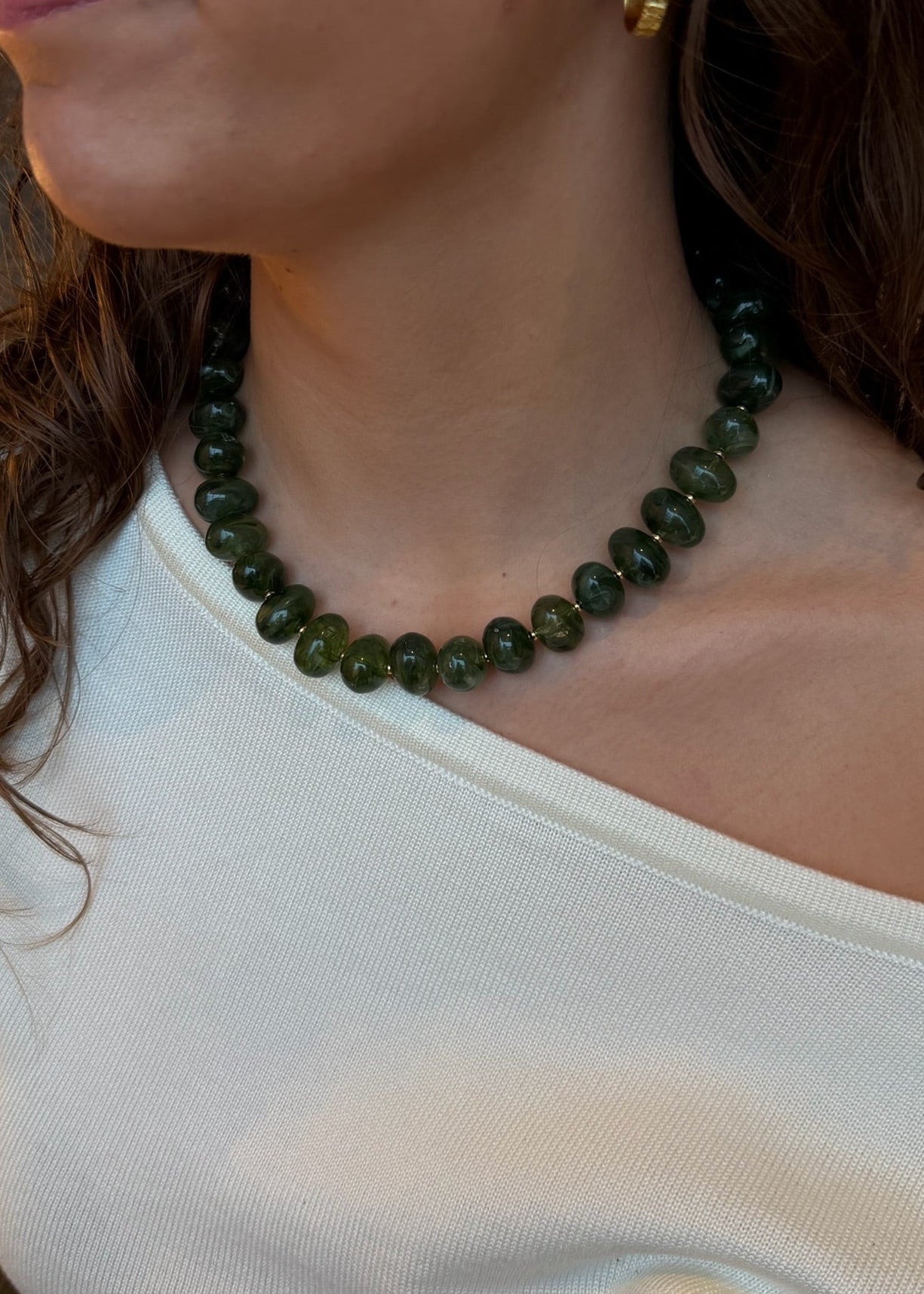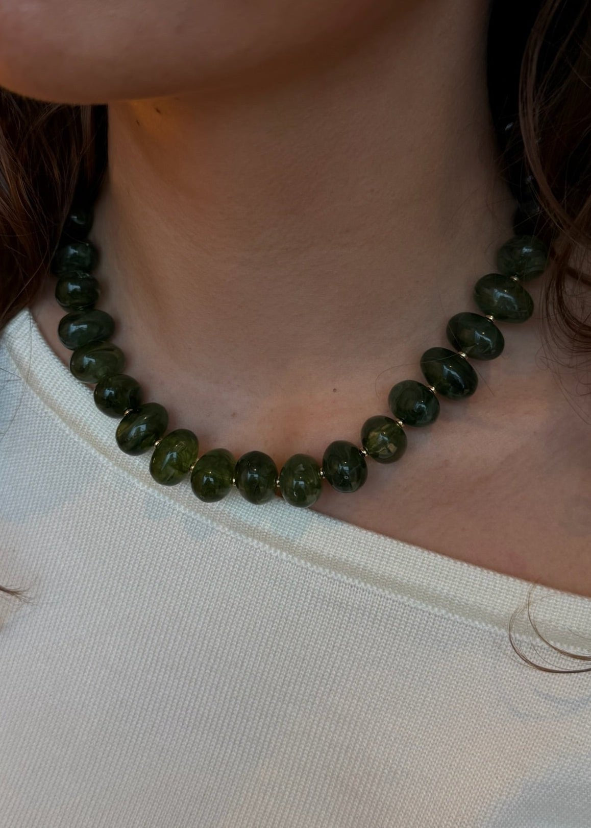 Vores Lea Halskæde er designet med store ovale perler, der giver et smukt og levende farvespil. De bløde former skaber et elegant, men markant udtryk. Perfekt som statement alene eller stylet i lag. ✨