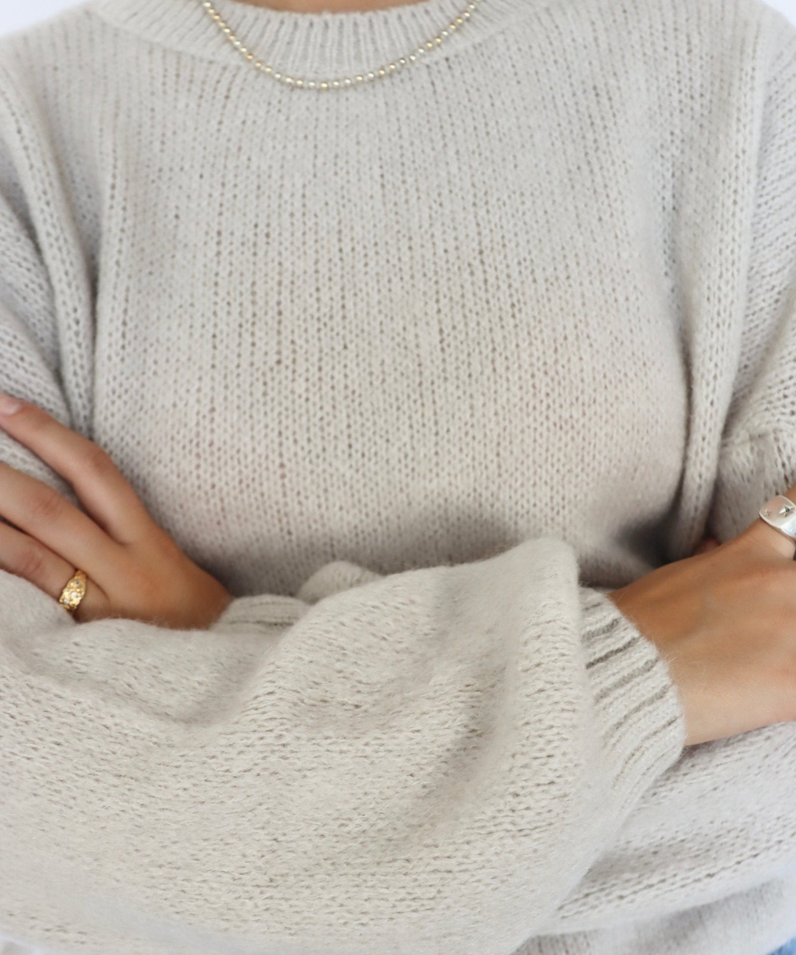 Evie strikken er den perfekte strik til efteråret. Den har et oversized fit, som passer perfekt til et par fede jeans eller vores populære hørbukser. Strikken fås i Lyserød, Hvid/Grøn, Hvid/Grå og Lilla☁️💘
