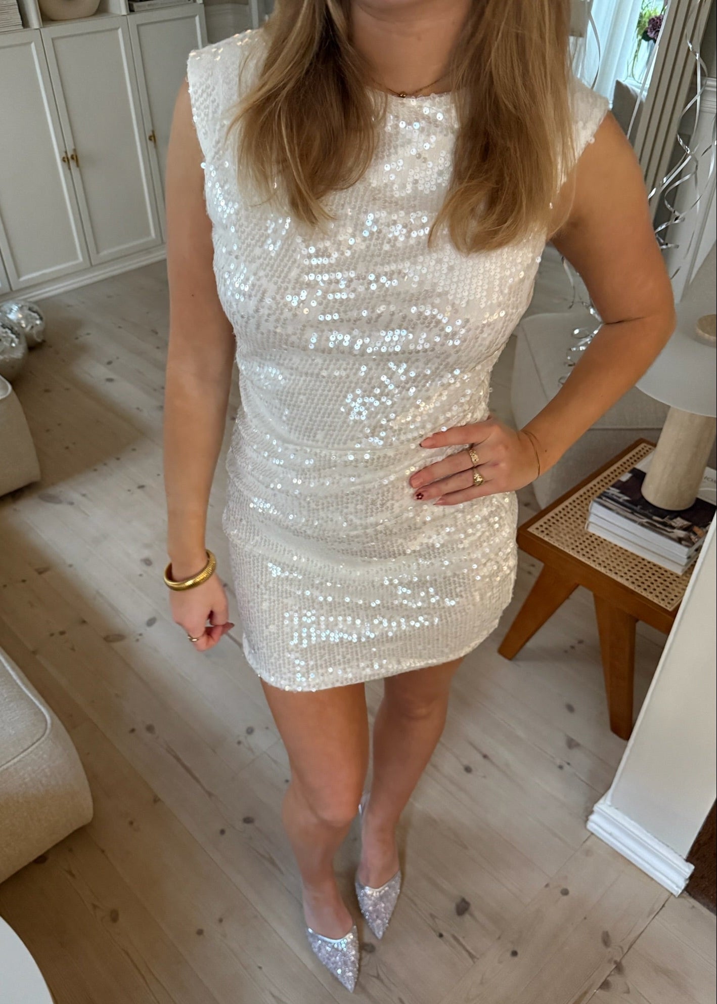 Luna Paillet Mini Kjolen er en elegant, funklende kjole designet til sæsonens festligheder. Den sølvglitrende paillet-overflade giver et eksklusivt og moderne udtryk, mens det draperede frontpanel skaber en smigrende silhuet med blød elegance. Med sin tidløse, ærmeløse pasform og klassiske mini-længde er Luna perfekt til julefrokoster, nytårsaften og alle de aftener, hvor du vil lyse rummet op✨