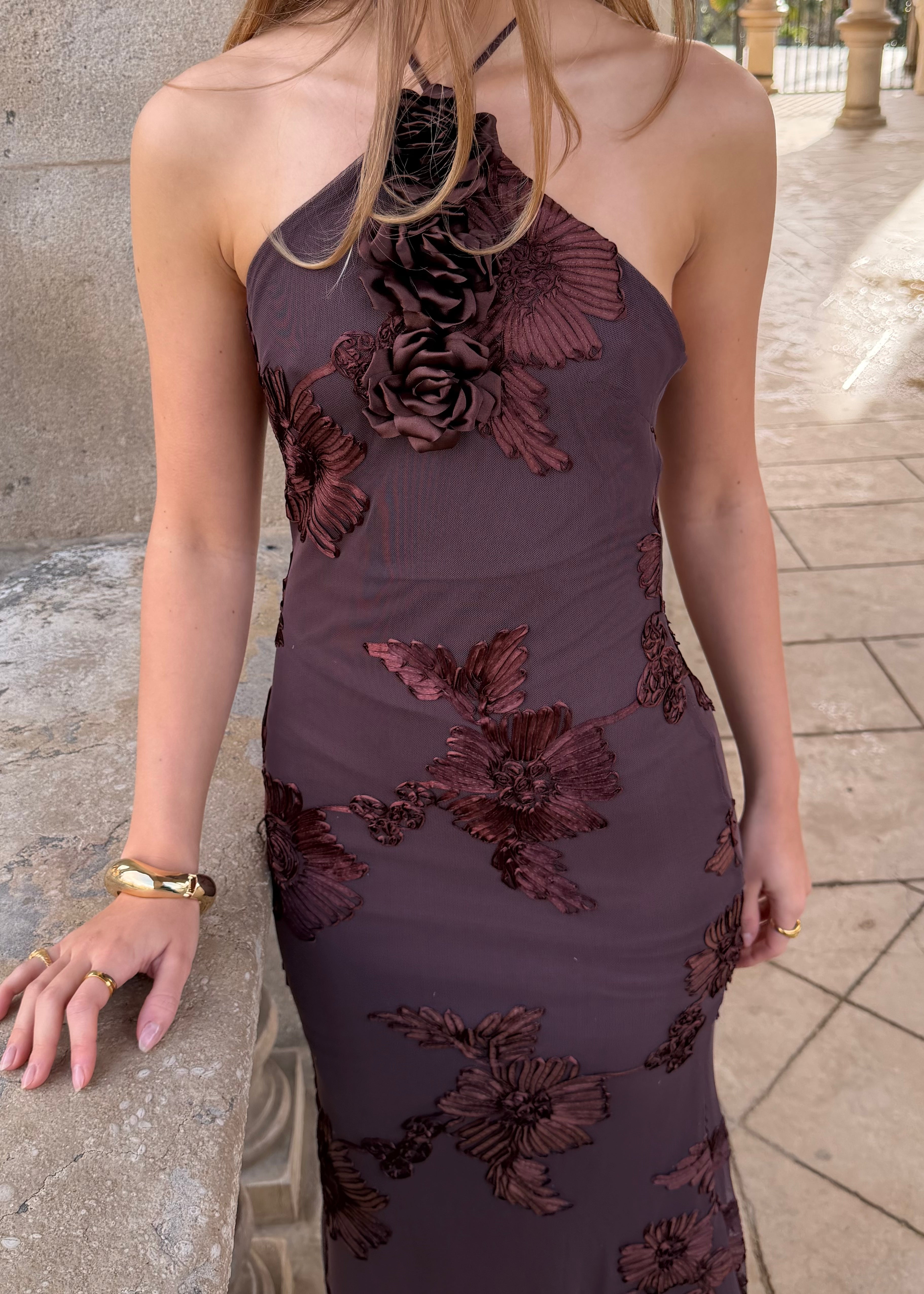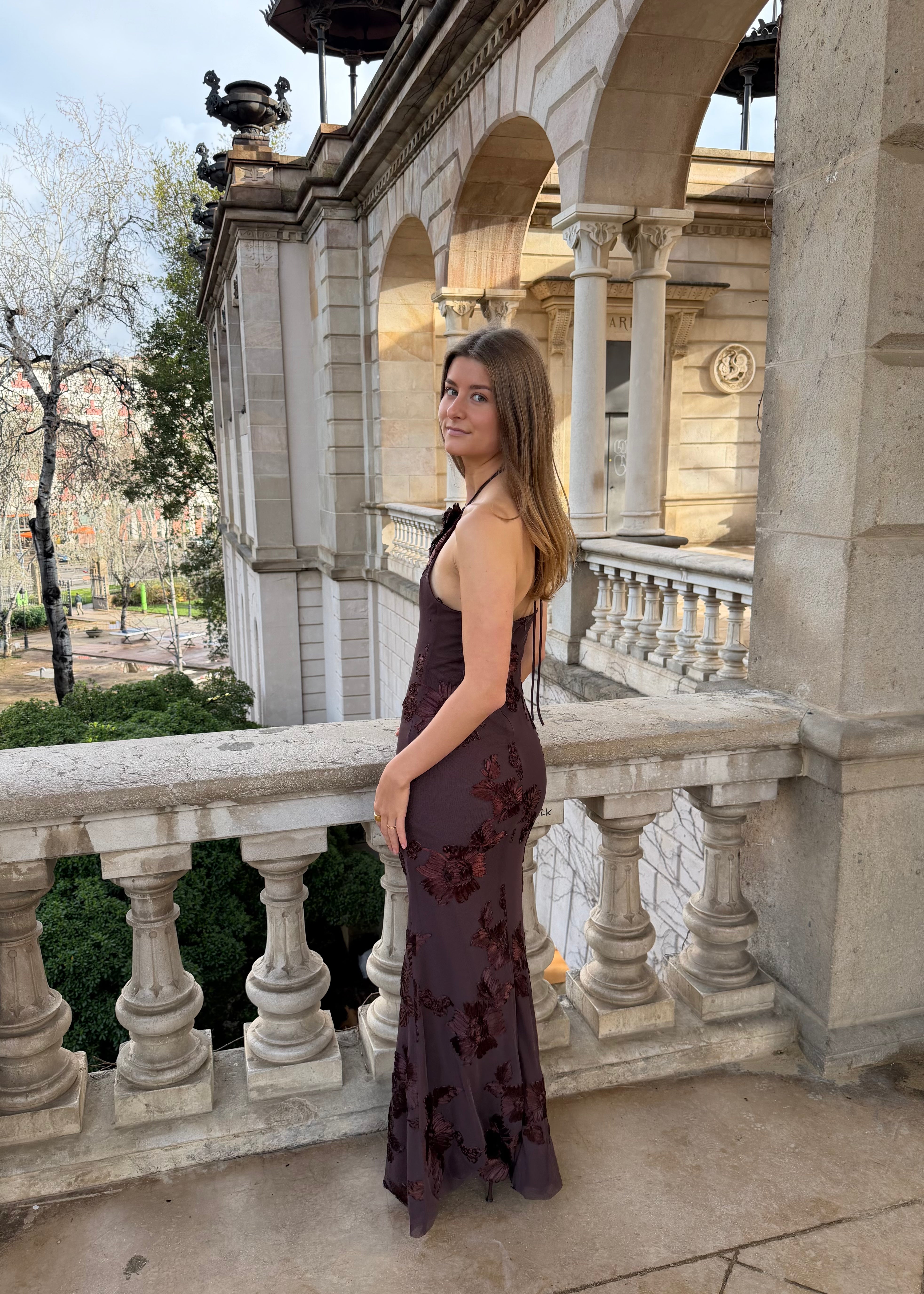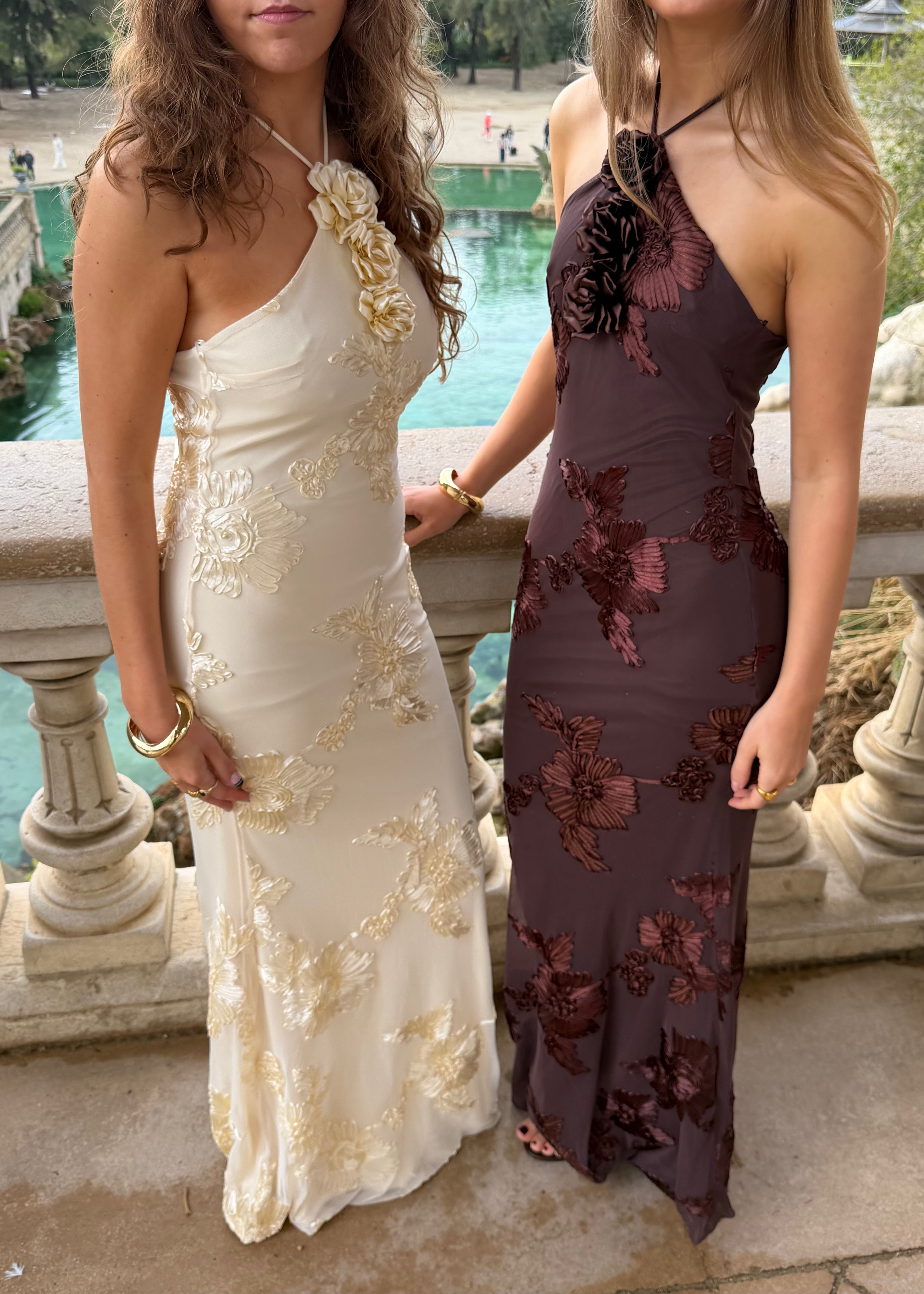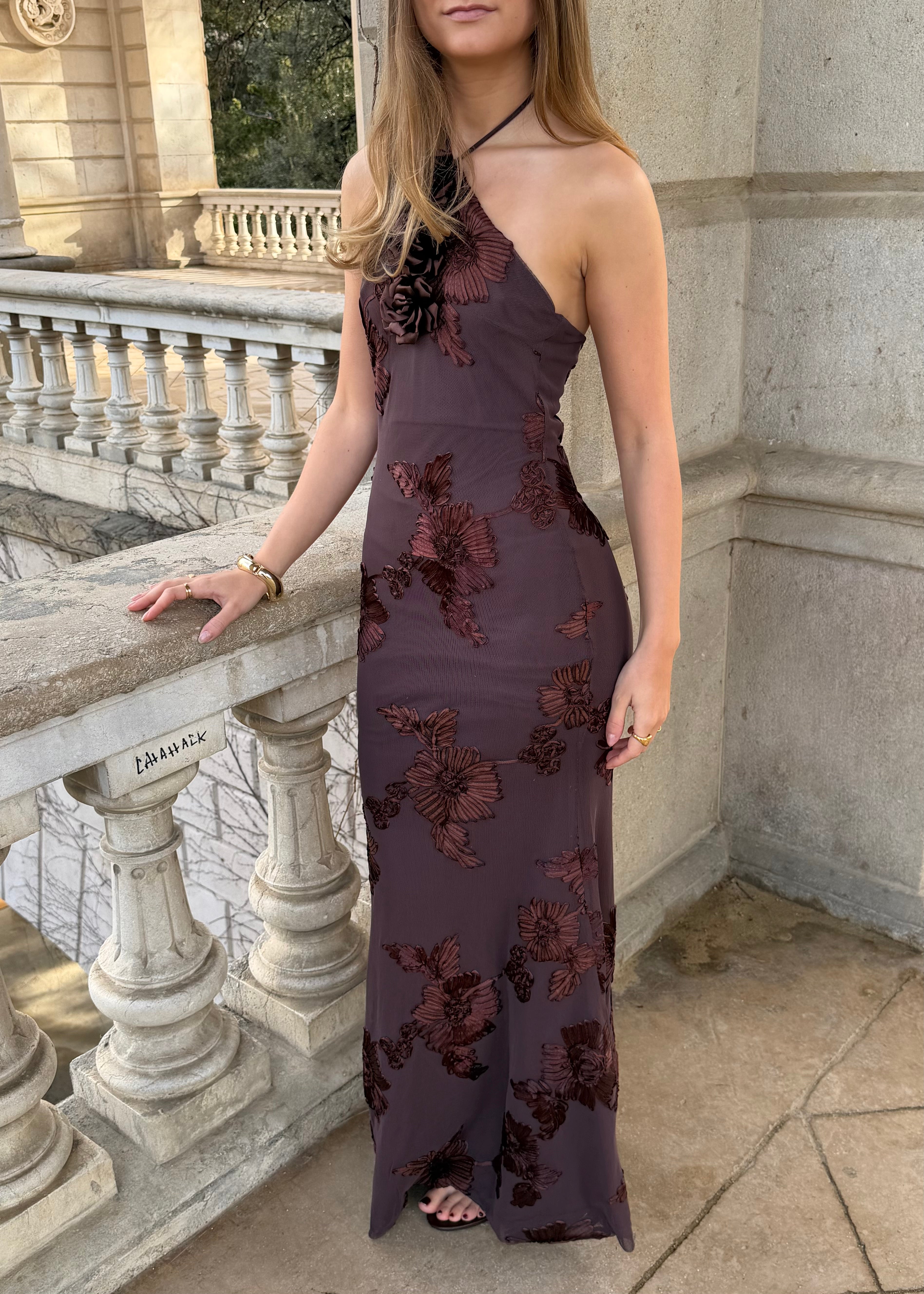 Josefine Maxi Kjolen er en lang, elegant kjole med blomsterstruktur og et smukt, let fald. Kjolen har halterneck-udskæring, som bindes i nakken, og en figursyet overdel, der giver en flot silhuet. Stoffet falder blødt ned langs kroppen og gør kjolen velegnet til både festlige anledninger og sommerens særlige øjeblikke 🌼