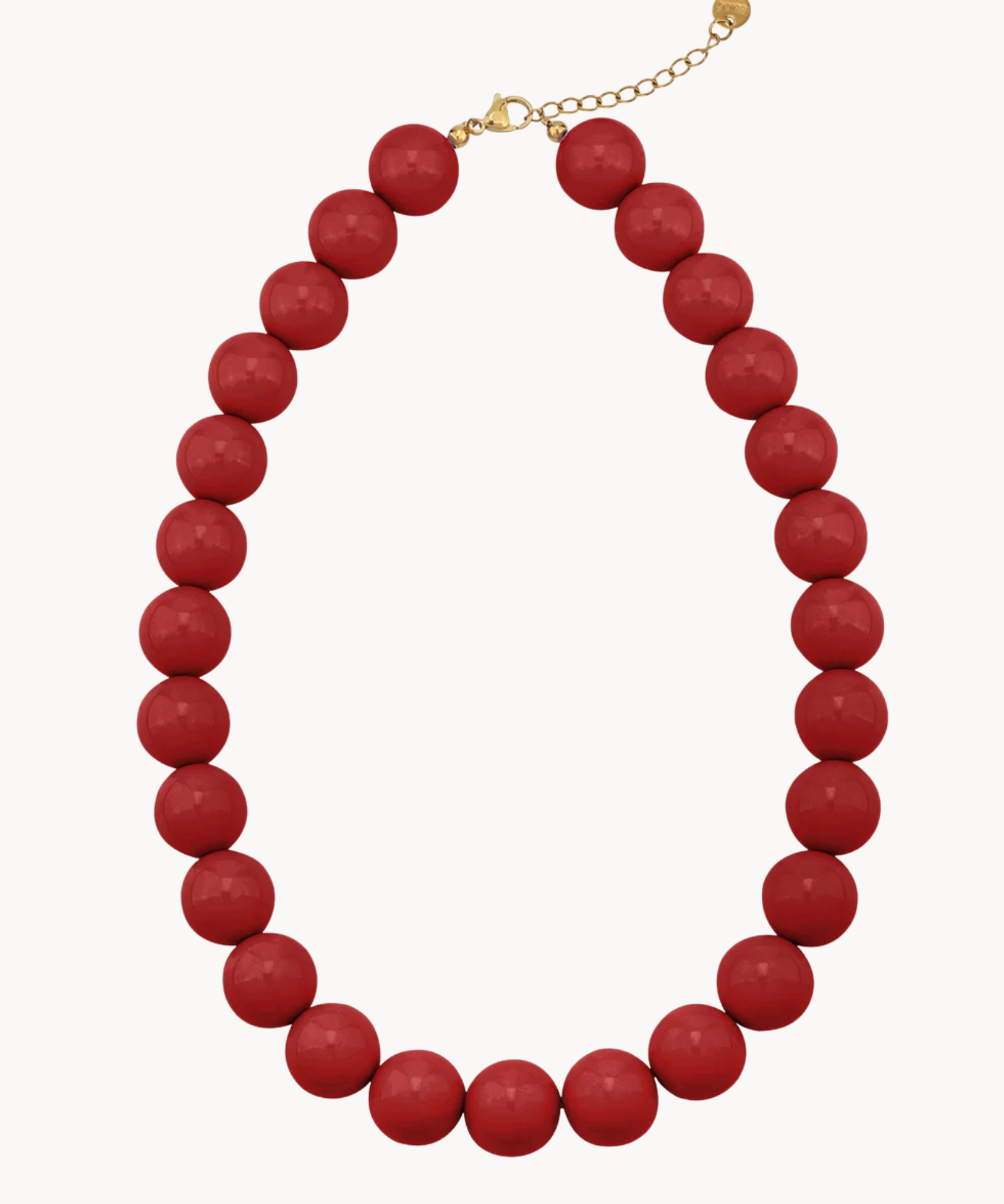 Vores Chunky Perlehalskæde er en klassisk og elegant halskæde med store, glansfulde røde perler. Halskæden giver et tidløst, men markant udtryk, der løfter ethvert outfit - perfekt både til hverdag og fest.
