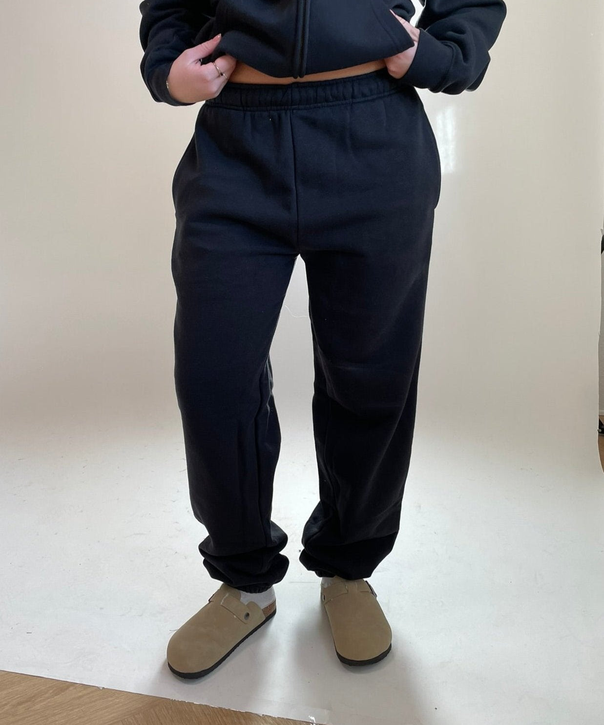 De klassiske joggingbukser uden elastik ved anklerne fra Fruit of the Loom. De er lavet i et blødt og varmt materiale, der gør dem komfortable at have på. Bukserne har to lommer i siderne og elastik ved taljen med bindbart bånd🧸🤎