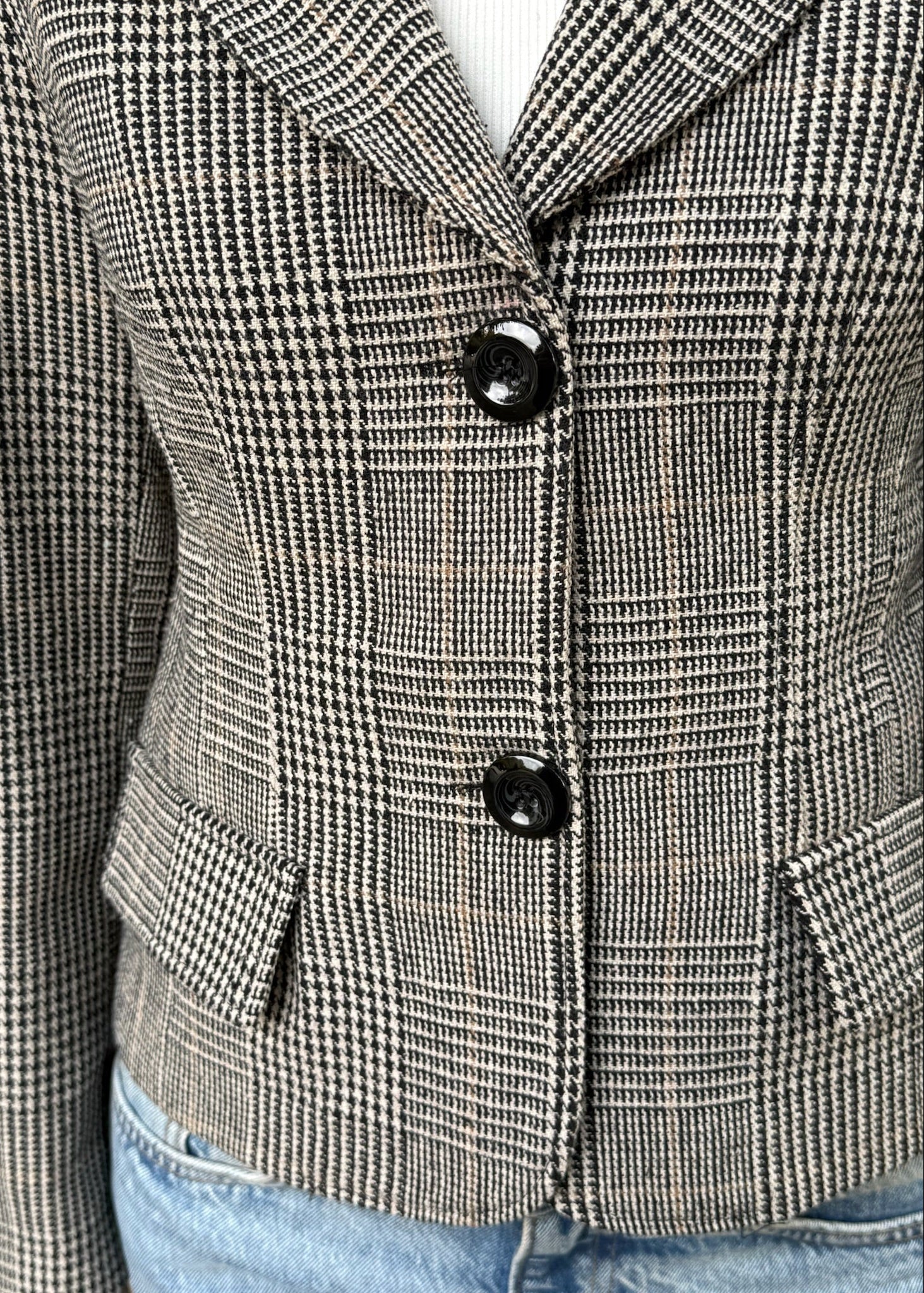 En klassisk figursyet blazer med et moderne ternet udtryk. Blazeren har en elegant silhuet, der skaber et skarpt og stilrent look. Perfekt til både hverdag og arbejde, hvor den tilfører outfittet et tidløst og sofistikeret touch.