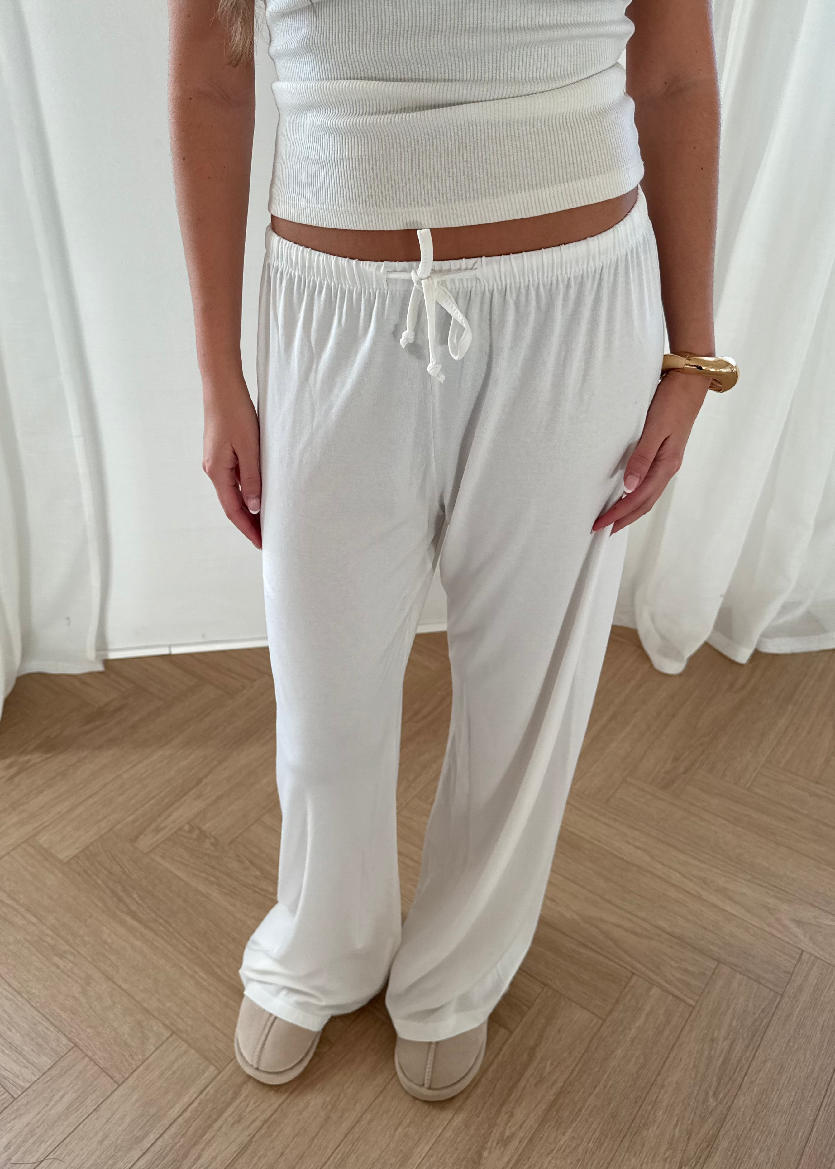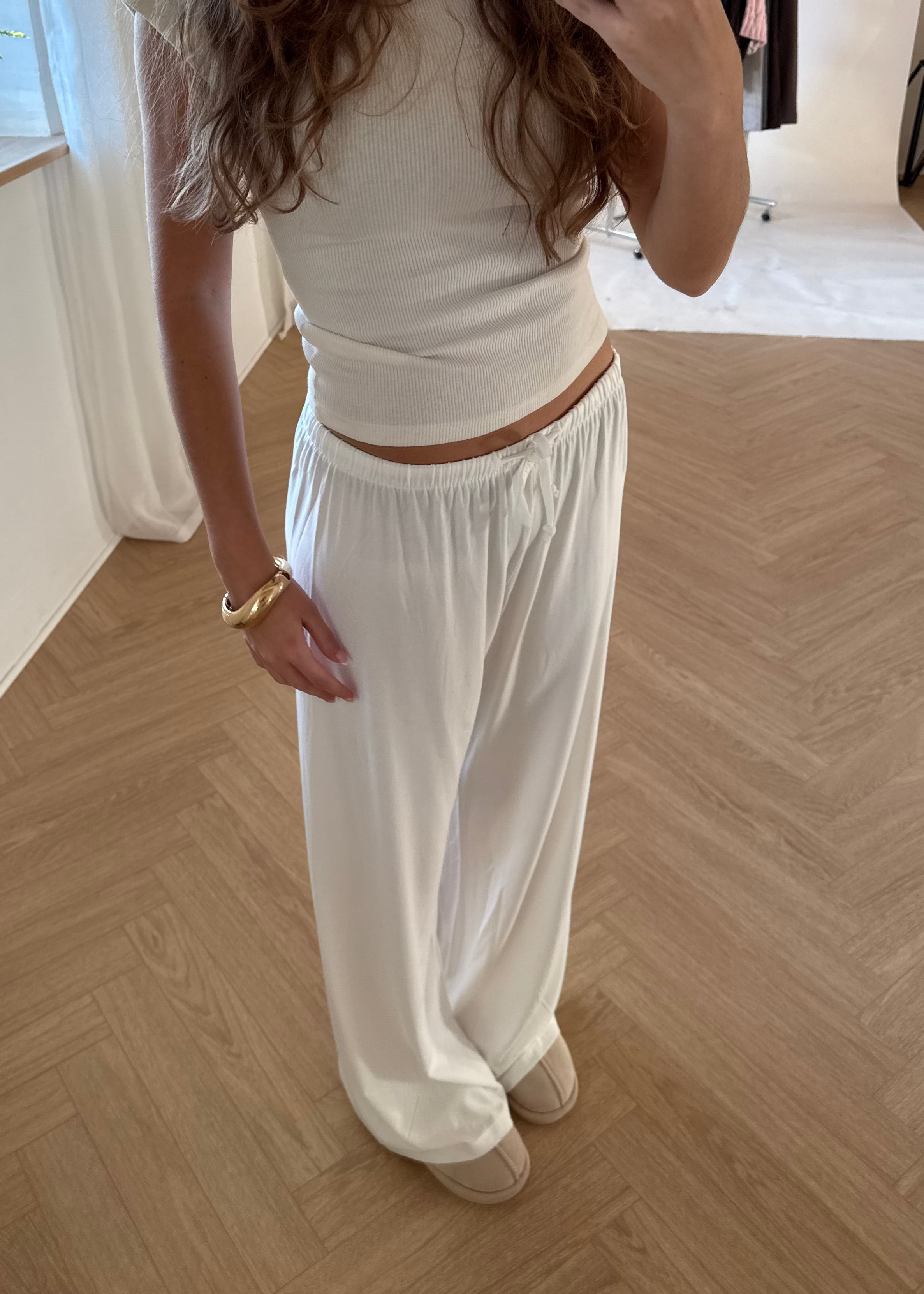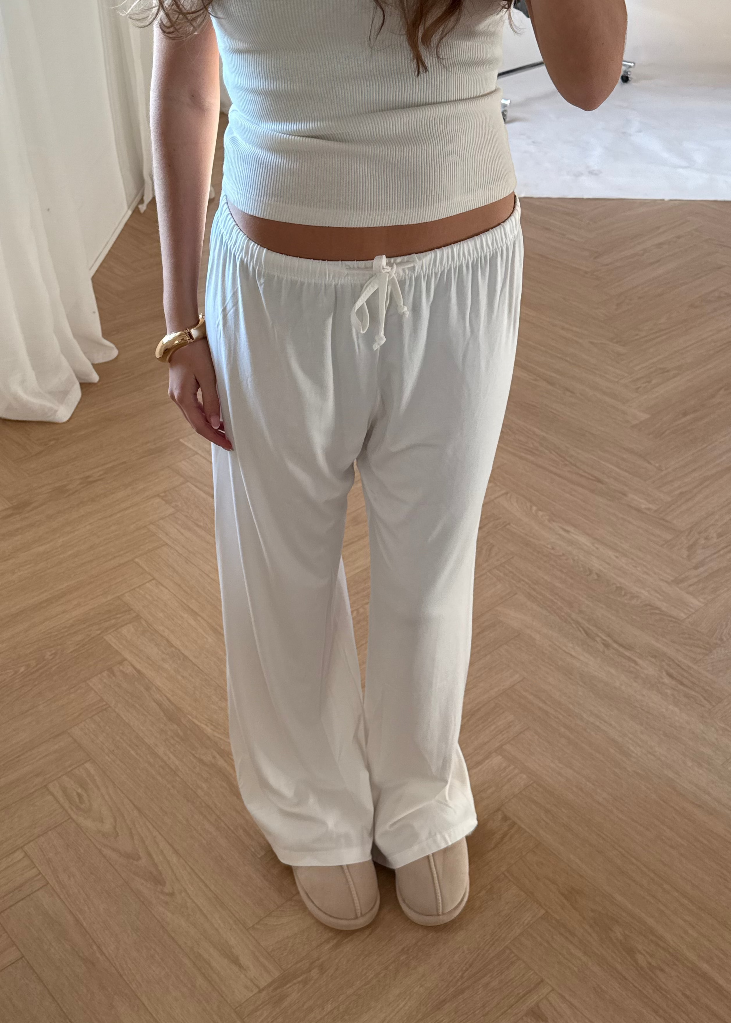 Vores Soft Bukser er løse hyggebukser med lige ben og en afslappet pasform. De sidder lavt på hoften og har elastik i taljen for ekstra komfort. Det bløde materiale gør dem perfekte til afslappede dage hjemme eller et casual hverdagslook 🤍