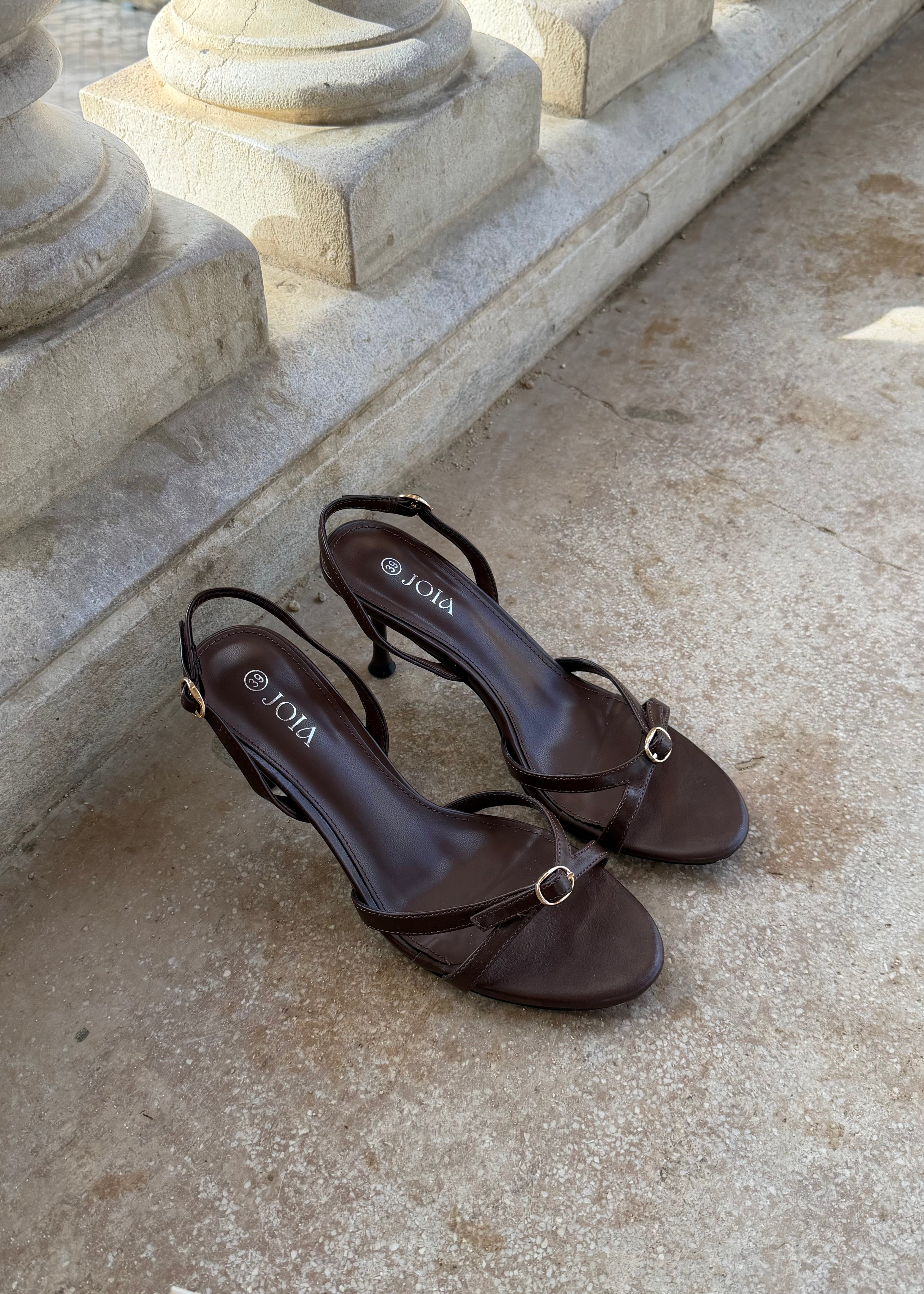 Vores Elina Heel Sandal er elegante sandaler med et feminint og let udtryk. De har fine, slanke remme over foden og en åben hæl med justerbar rem, som giver en smuk pasform. Den elegante hæl tilfører et sofistikeret løft og gør sandalen ideel til både sommerens festlige anledninger og mere stilrene hverdagslooks 🖤