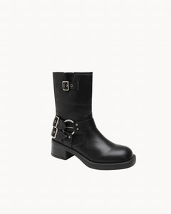 Vores Biker Boots fås med både høj og lav skaft. De høje går til midt på skinnebenet. De har derudover sølvfarvede spænder og nitter, som giver dem et råt udtryk. De passer perfekt til en nederdel🖤☀️
