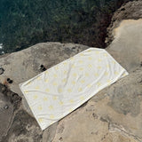 Vores Strandhåndklæde fås i flere flotte mønstre og farver og er perfekt til strandturen. Med en størrelse på 70x140 cm får du både komfort og plads til at nyde solen. Den bløde, mønstrede front giver et stilfuldt look, mens bagsiden er i klassisk håndklædemateriale (frotté), der effektivt tørrer dig af efter en dukkert☀️🌴