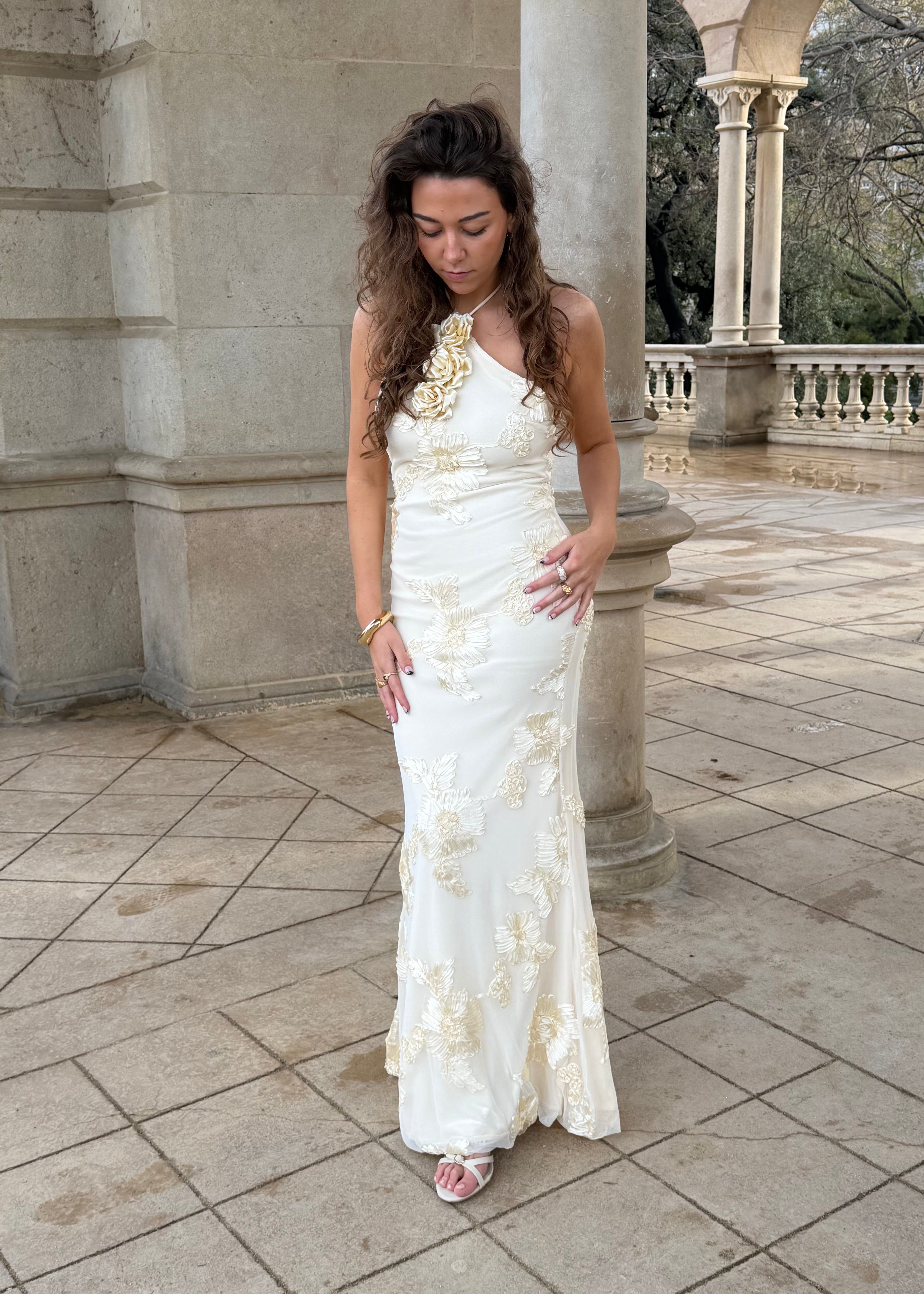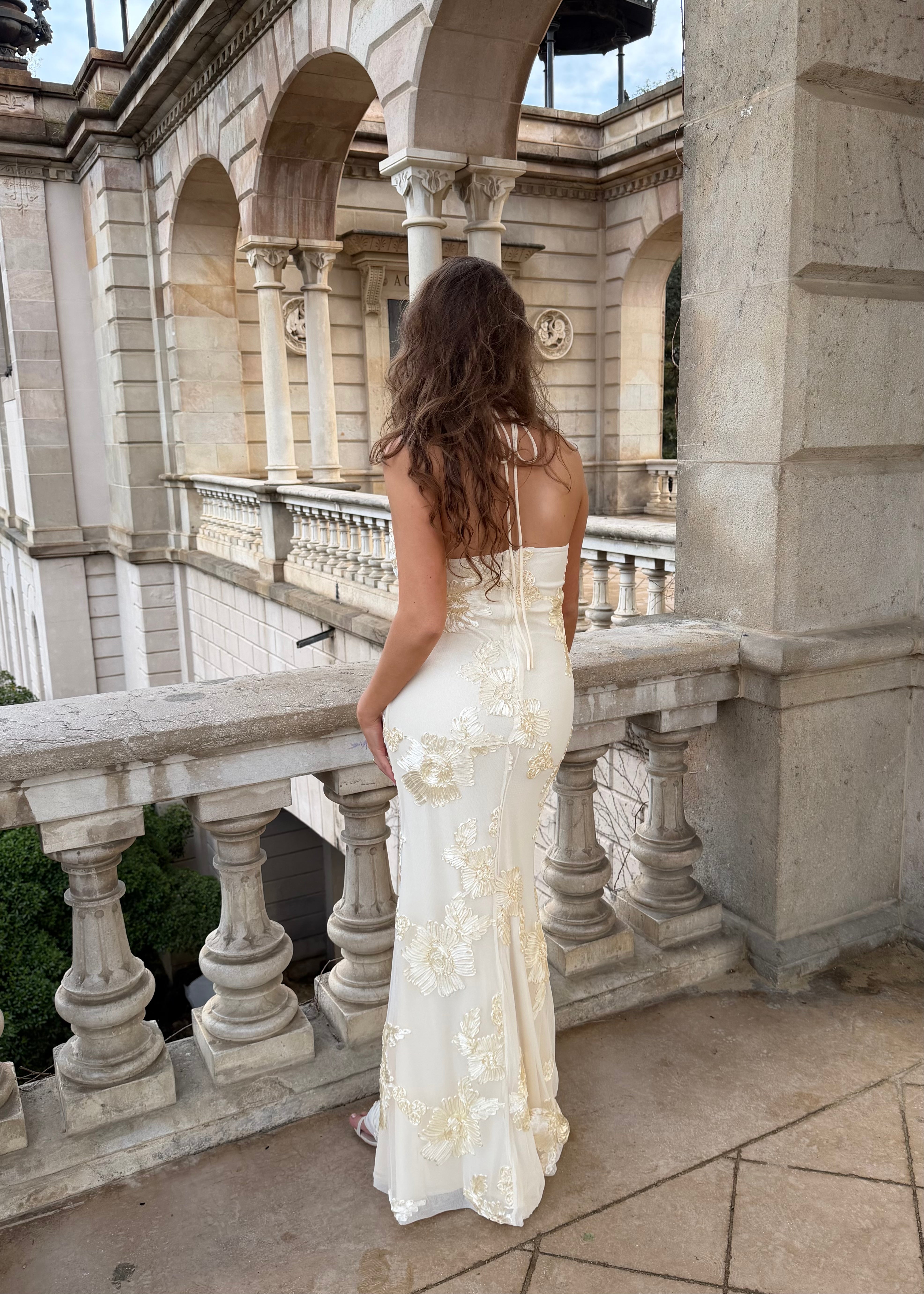 Josefine Maxi Kjolen er en lang, elegant kjole med blomsterstruktur og et smukt, let fald. Kjolen har halterneck-udskæring, som bindes i nakken, og en figursyet overdel, der giver en flot silhuet. Stoffet falder blødt ned langs kroppen og gør kjolen velegnet til både festlige anledninger og sommerens særlige øjeblikke 🌼