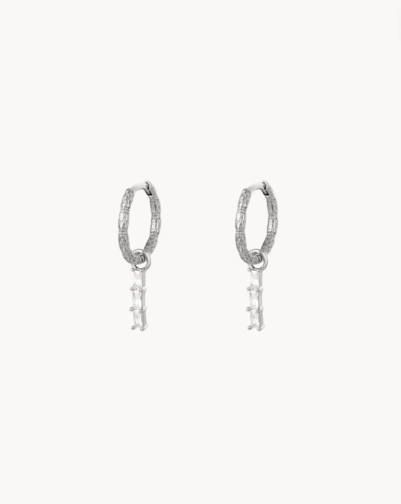 Talia Øreringene består af en lille hoop med et vedhæng bestående af 3 zirkoner.