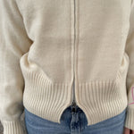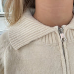 Vores Zip Strik Cardigan har en lynlås foran, som kan lynes både oppe- og nedefra. På denne måde kan man lyne den på mange forskellige måder, som giver hvert sit look. Blusen har en fin krave og ribbet kant ved ærmerne og i bunden. Desuden er der også broderet to hjerter ved det ene ærme💞🌸
