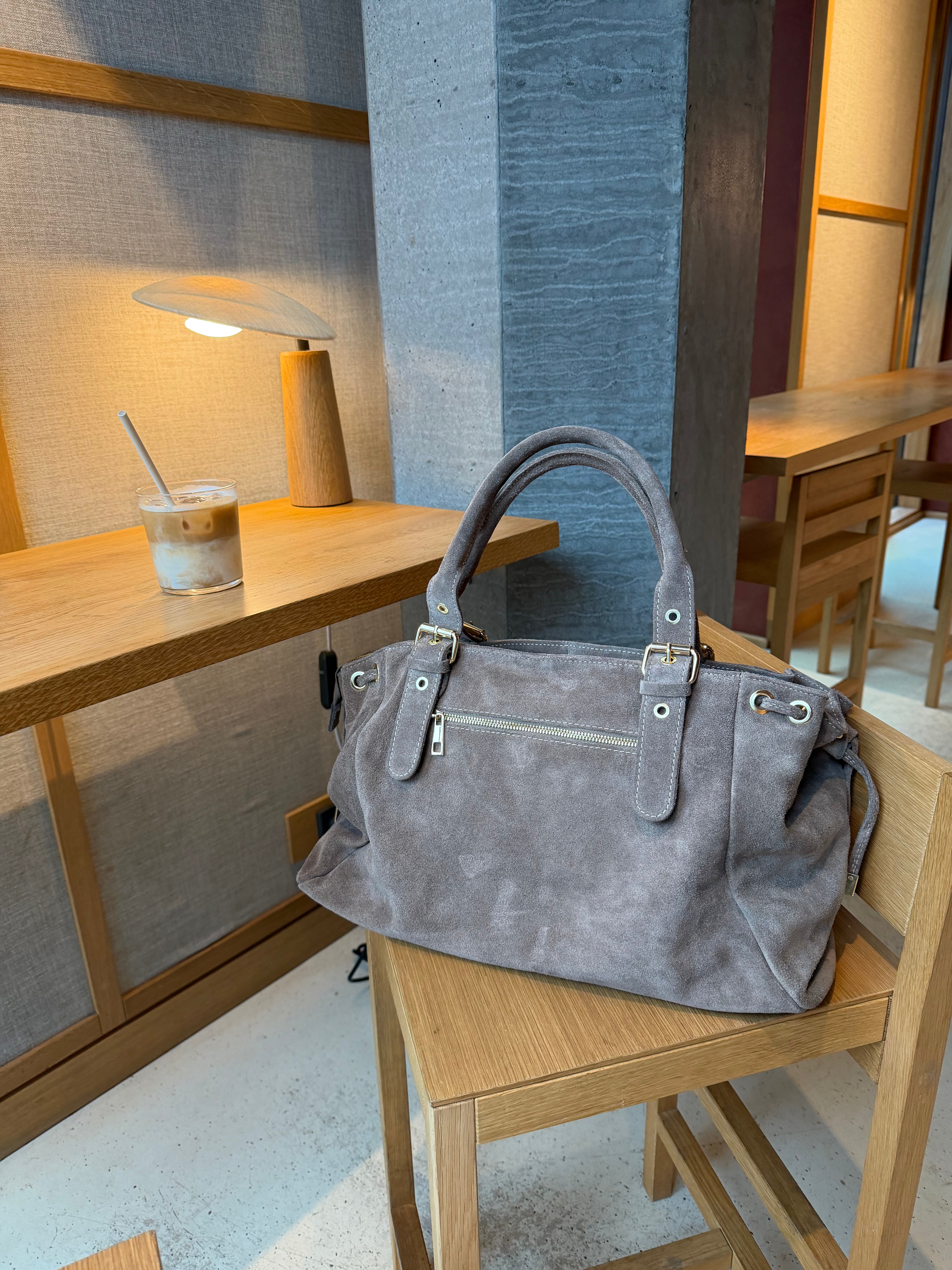 London Tasken i Ruskind er en elegant skuldertaske fremstillet i 100 % ægte ruskind 🤎💫 Tasken har justerbare stropper og kan strammes ind i siderne, så formen nemt kan tilpasses efter behov.