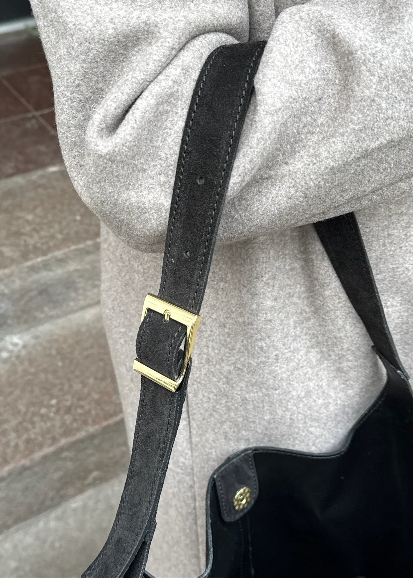 Paula Shopper Tasken er en blød og elegant shopper i 100% ægte ruskind. Tasken har en justerbar stop, så tasken både kan bæres på skulderen og som en cross-over på ryggen. Tasken har plads til en 13-tommer computer, og derudover har tasken ét stort rum, hvor der er plads til bl.a. en computer, bøger mm samt en udtagelig pung, hvor der er plads til små nipse-ting💫🤎