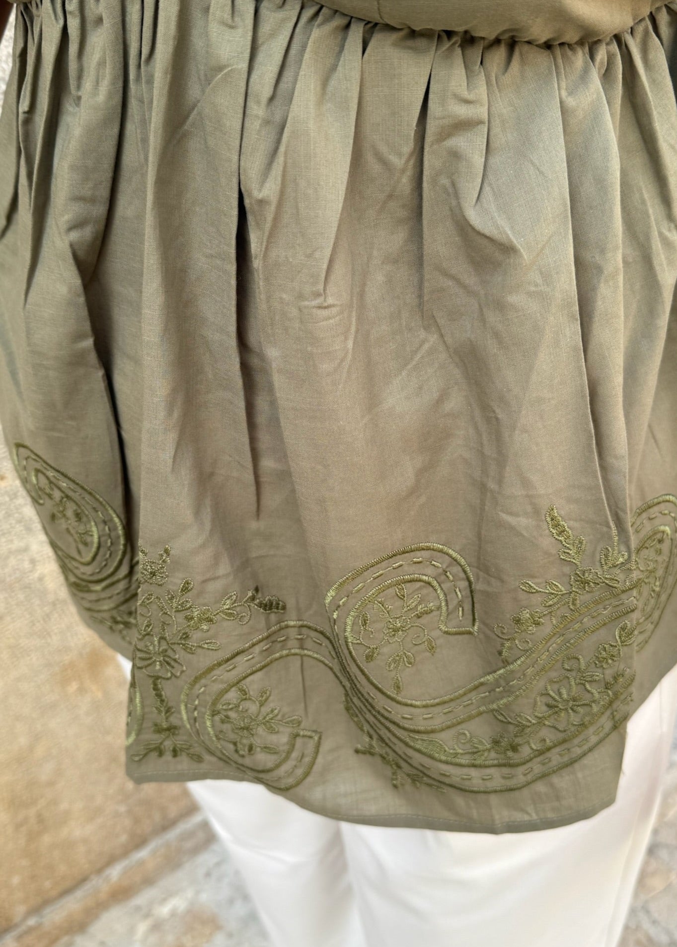 Vores Sophia Top er en let, kort sommertop i 100% bomuld 🌼 Den har feminine spaghetti-stropper og en V-udskæring. Toppen er udsmykket med fine broderingsdetaljer nederst og smukke blonder ved brystet.