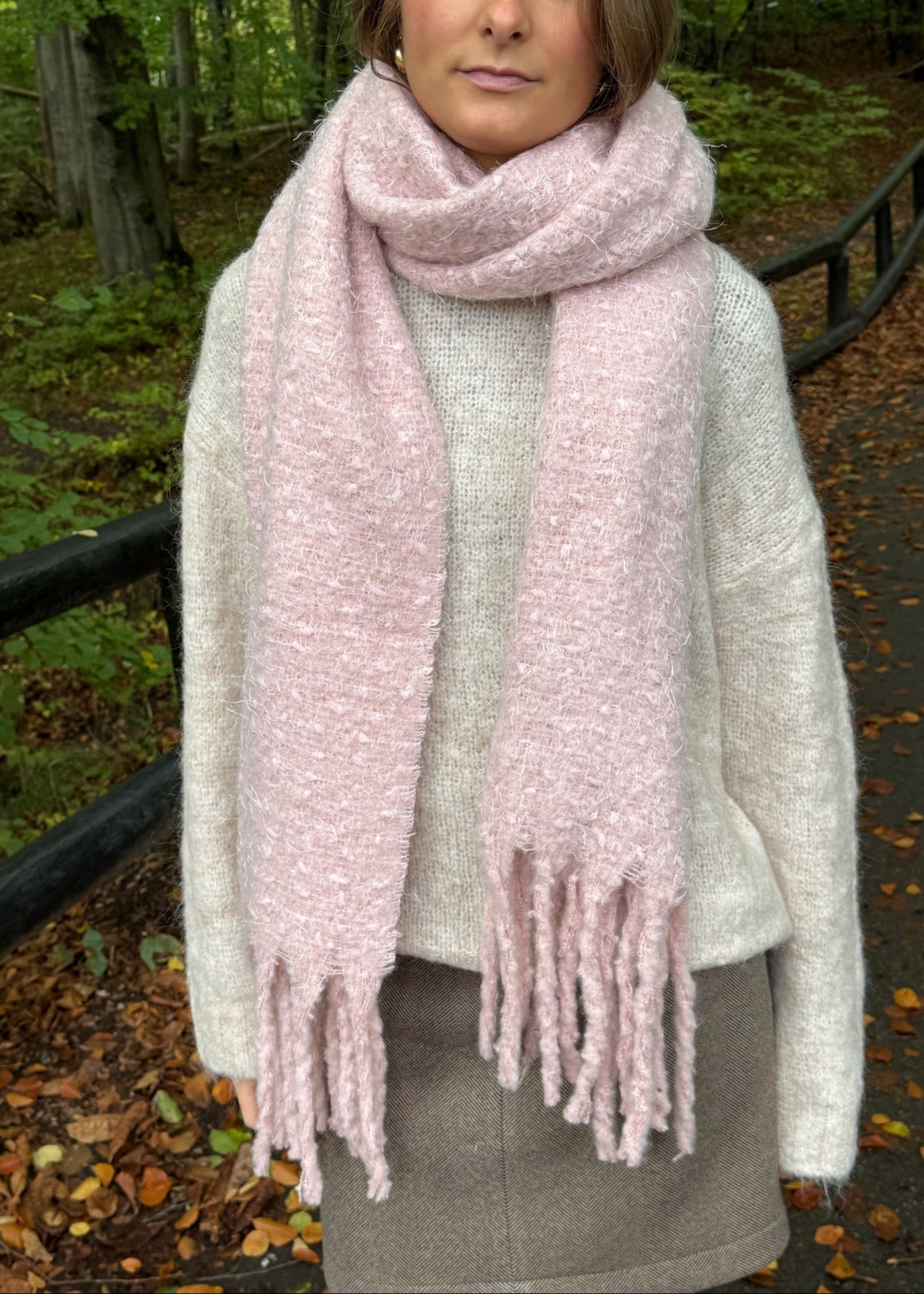 Vores nye Chunky Tørklæde er et blødt og stort tørklæde med frynser og glitter detalje, der giver et flot og hyggeligt udtryk. Den chunky kvalitet gør det perfekt til de kolde dage, hvor du ønsker både varme, komfort og stil 🧣✨