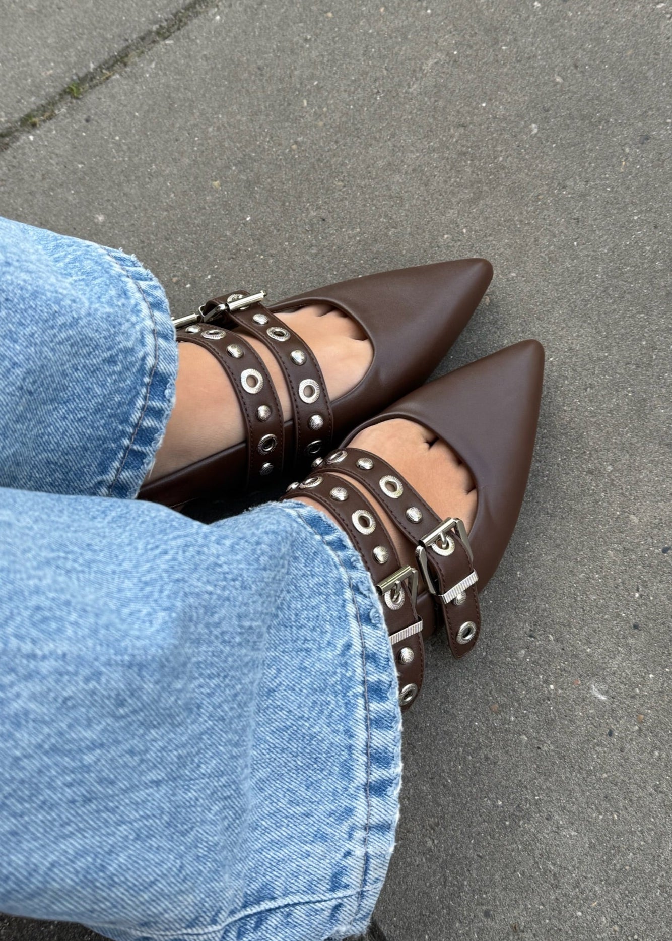 Vores Noelia Slingbacks er flade sko med en elastisk hælrem og to chunky, todelte spænder over foden. De er perfekte til en bytur, men med deres komfortable pasform og stilrene look kan de også løfte dit hverdagsoutfit🖤⚡️