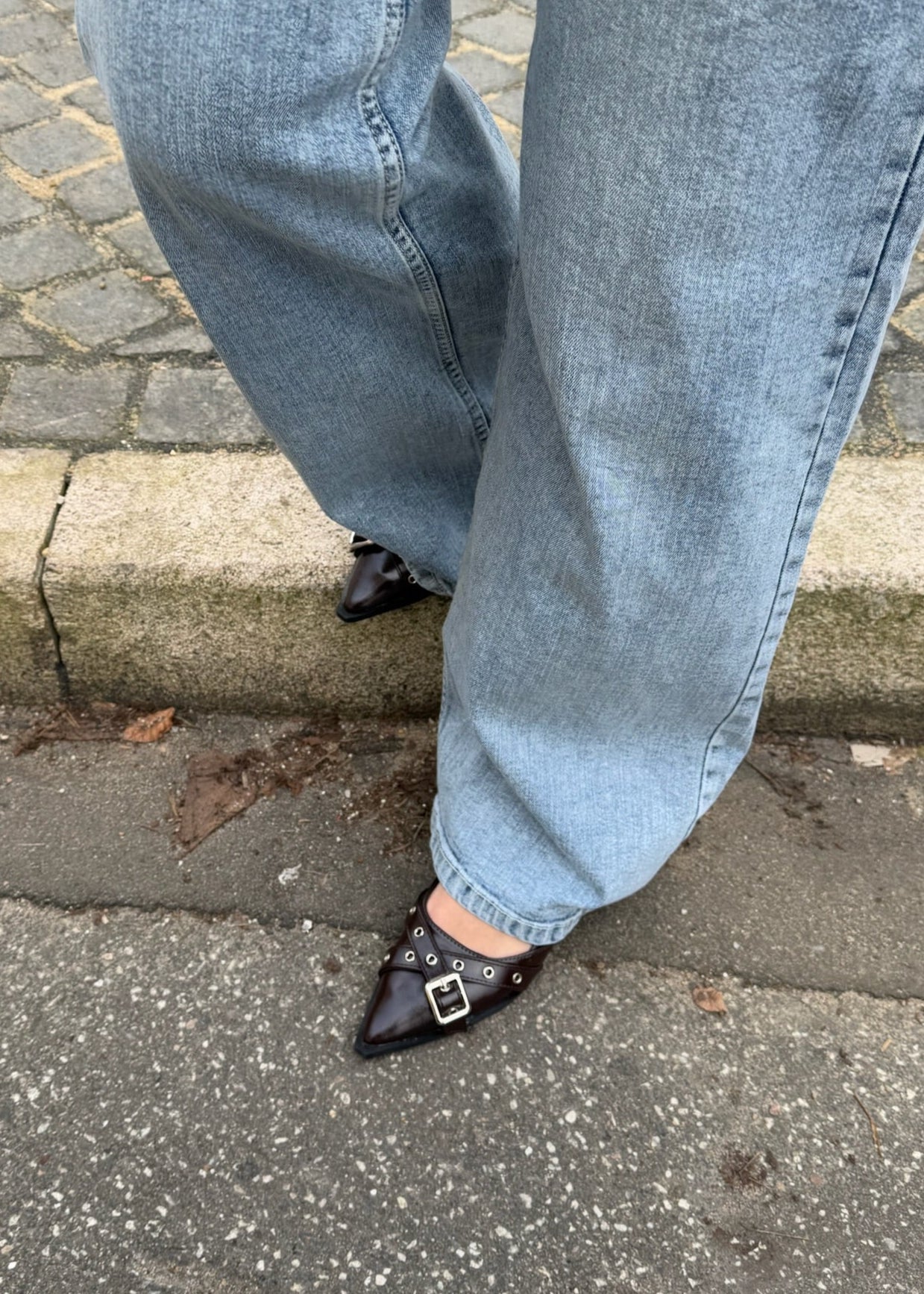 Vores Seline Slingbacks er et par flade slingbacks med justerbar rem og chunky spænder, som krydser på spidsen. De er perfekte til en bytur, men med deres komfortable fit og stilet look, kan de også pifte hverdags outfittet op🖤⚡️