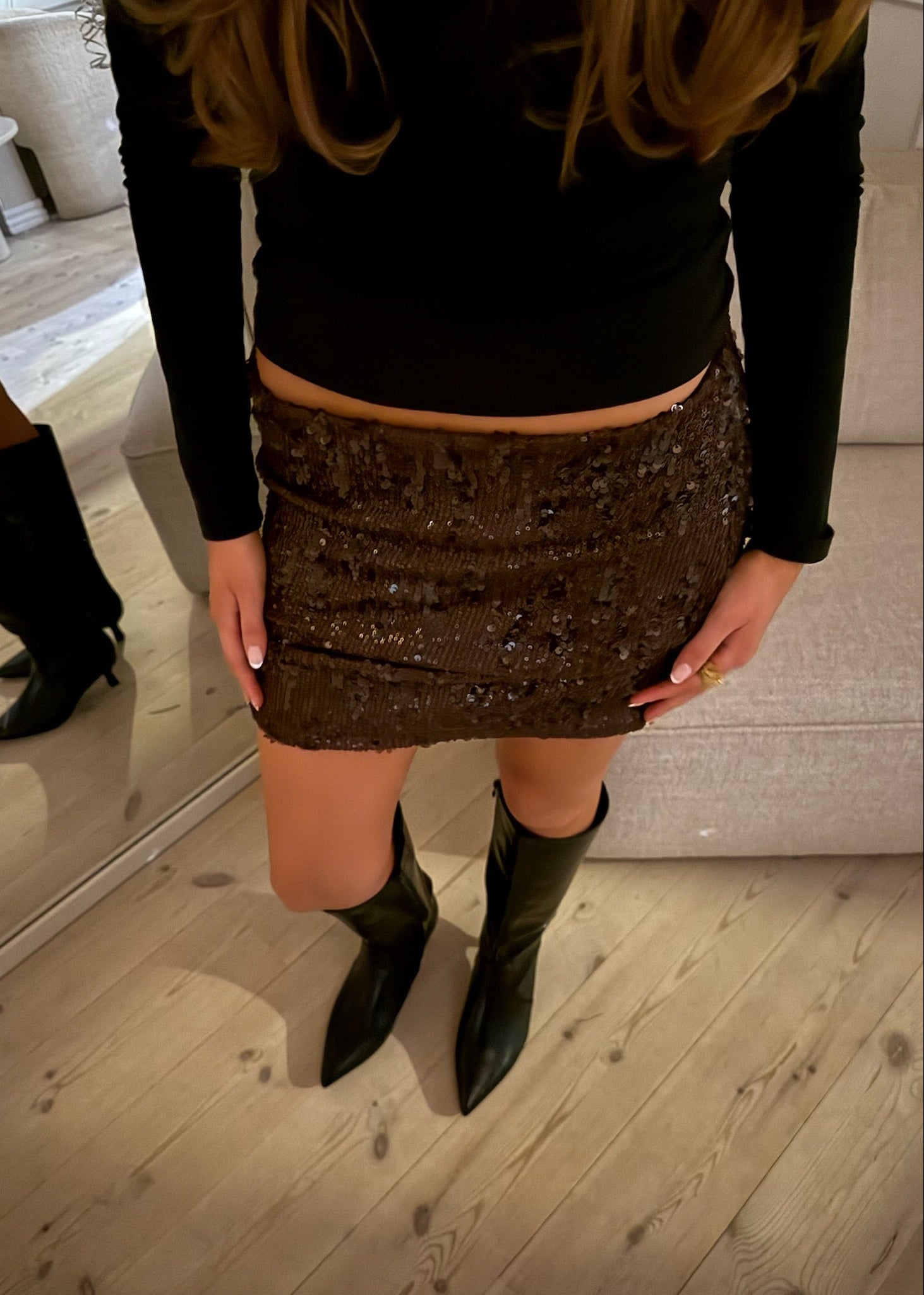 Astra Mini Paillet Nederdel er skabt til øjeblikke, hvor du vil skinne. Nederdelen er dækket af fine pailletter, der fanger lyset og skaber et glamourøst, men stadig sofistikeret udtryk. Den tætsiddende pasform fremhæver figuren, mens det elastiske materiale sikrer komfort gennem hele aftenen✨