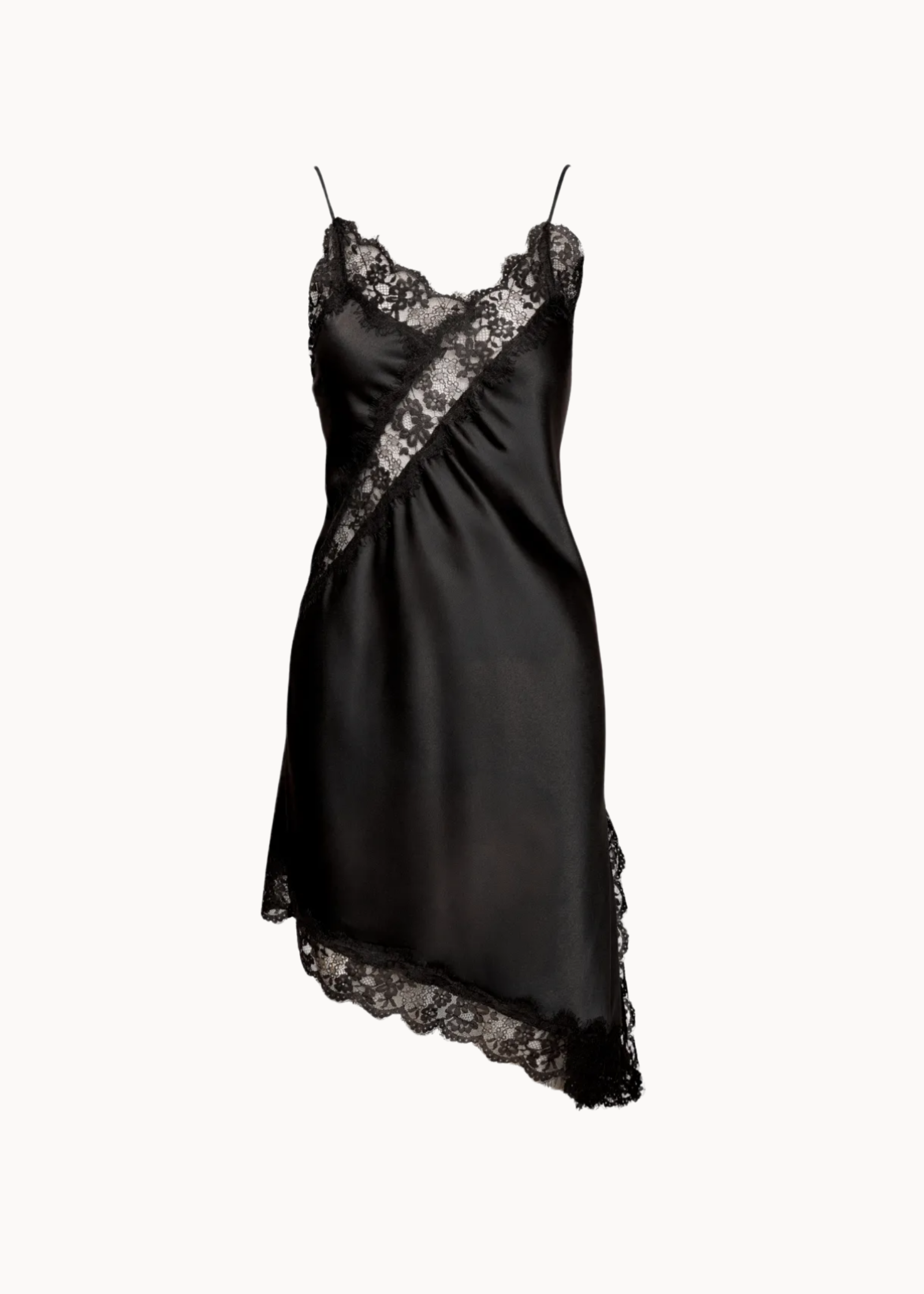 Asymmetrisk Satin Kjole - Sort