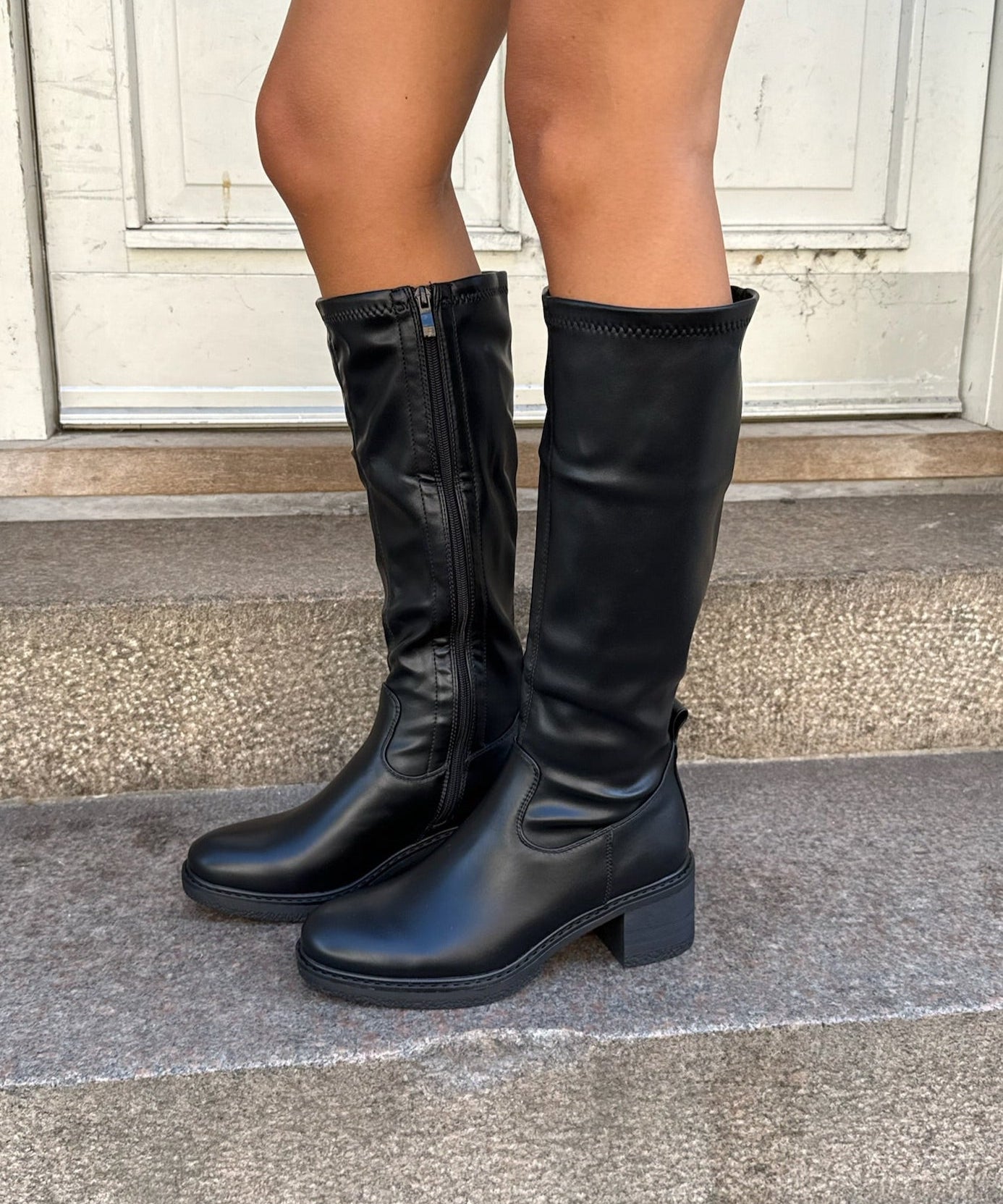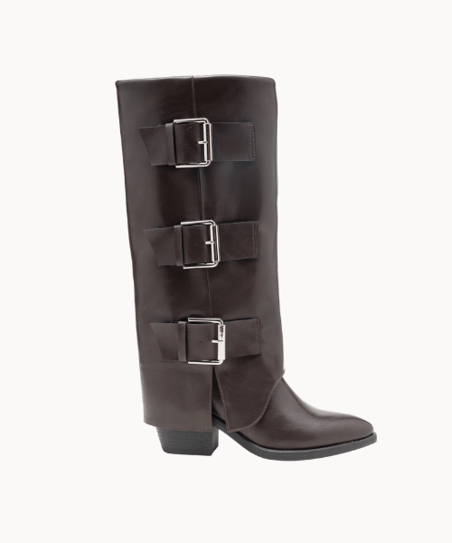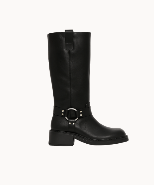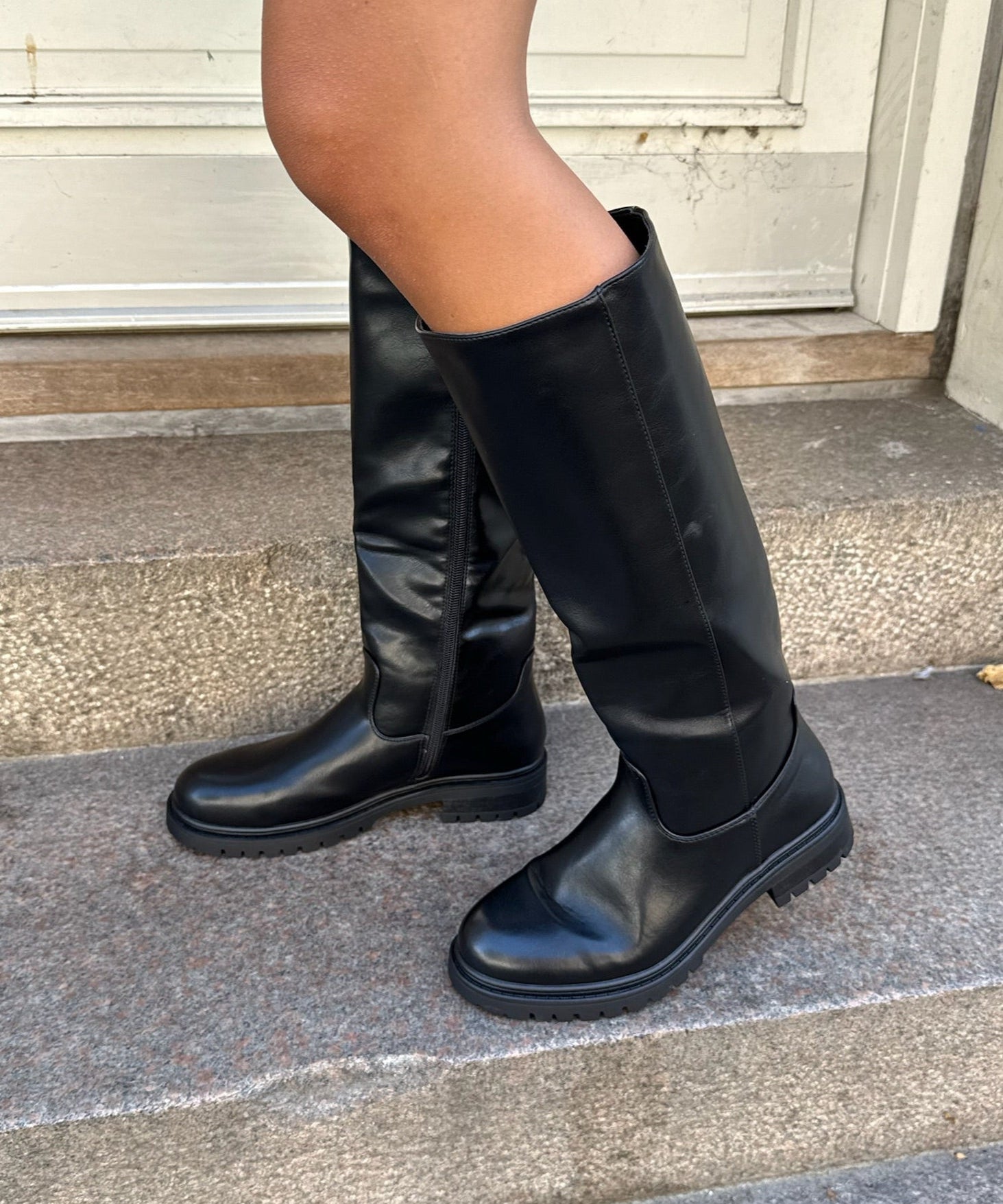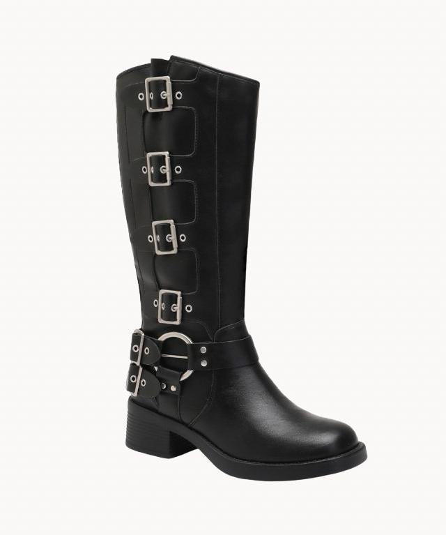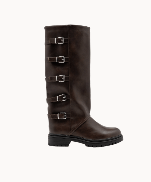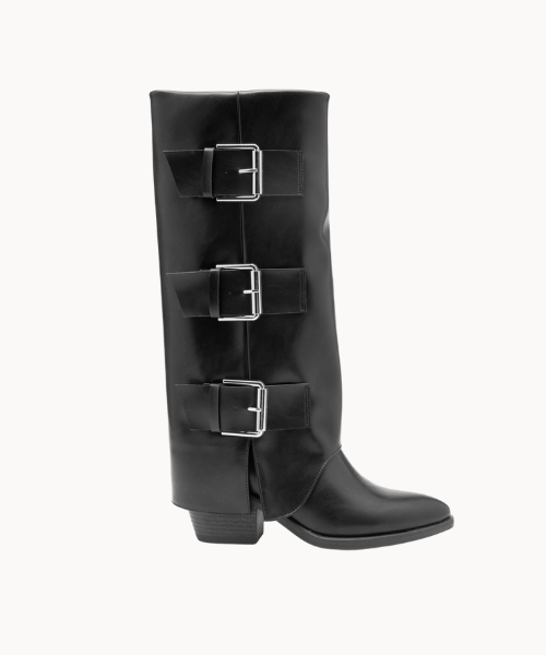 Vores nye Buckle støvler er en mellemhøj støvle i imiteret læder med mat finish. De har et enkelt, lige skaft med lynlås bagpå, som gør dem nemme at tage af og på. Den metalliske spænde og nittedetaljer giver støvlen et råt og stilrent udtryk, der passer perfekt til efteråret og vinteren. ⭐