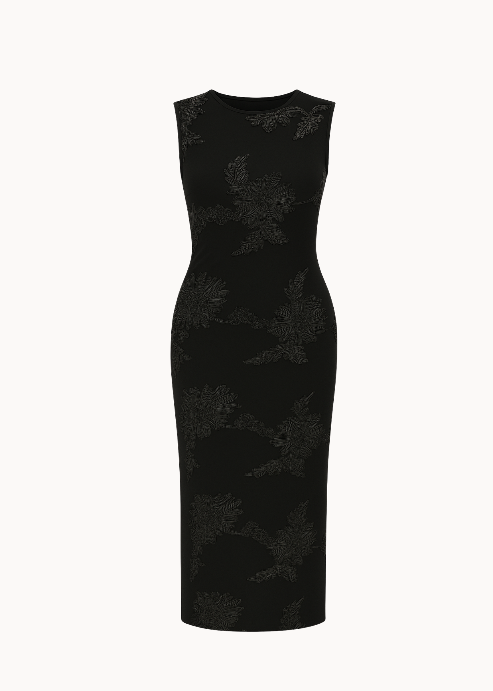 Vores Floral Midi Kjole kombinerer elegance og femininitet i et tidløst design. Kjolen har et smukt blomsterprint, der giver et eksklusivt og sofistikeret udtryk. Den tætsiddende pasform fremhæver figuren, mens det bløde og strækbare materiale sikrer en behagelig komfort. Perfekt til både middag, fest og særlige anledninger, hvor du vil føle dig elegant og selvsikker✨