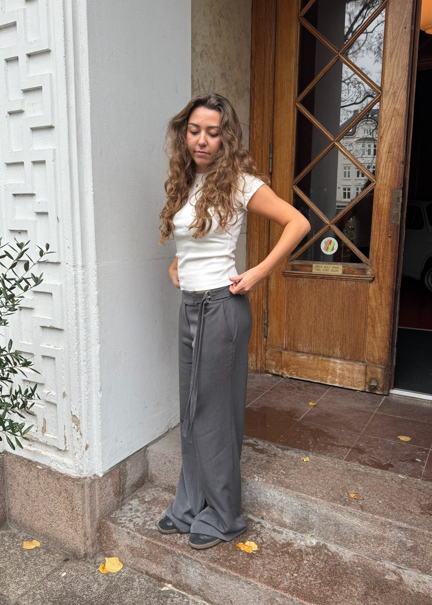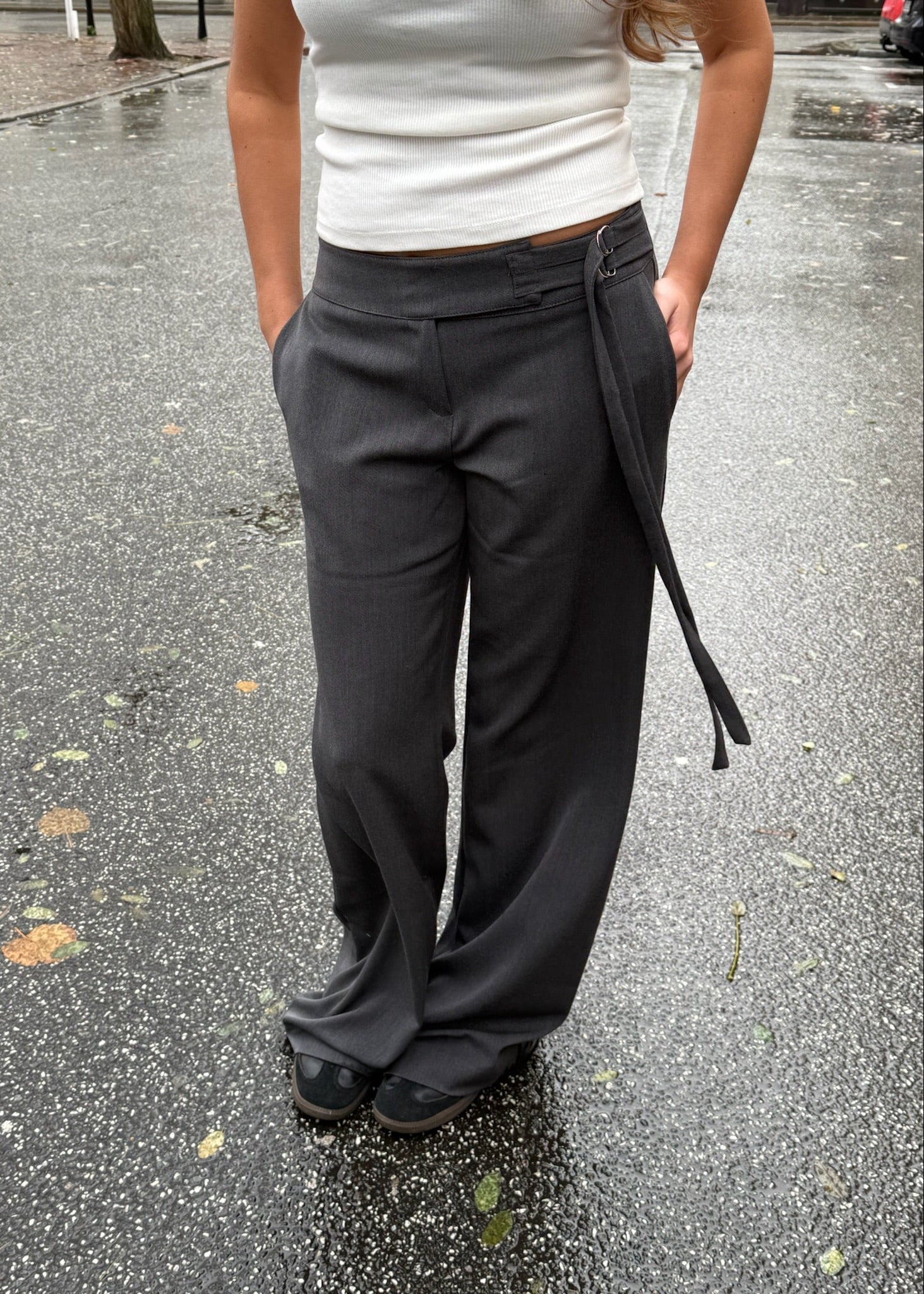 Low Waist Bukser med Spænde - Grå - ByStenholt.dk