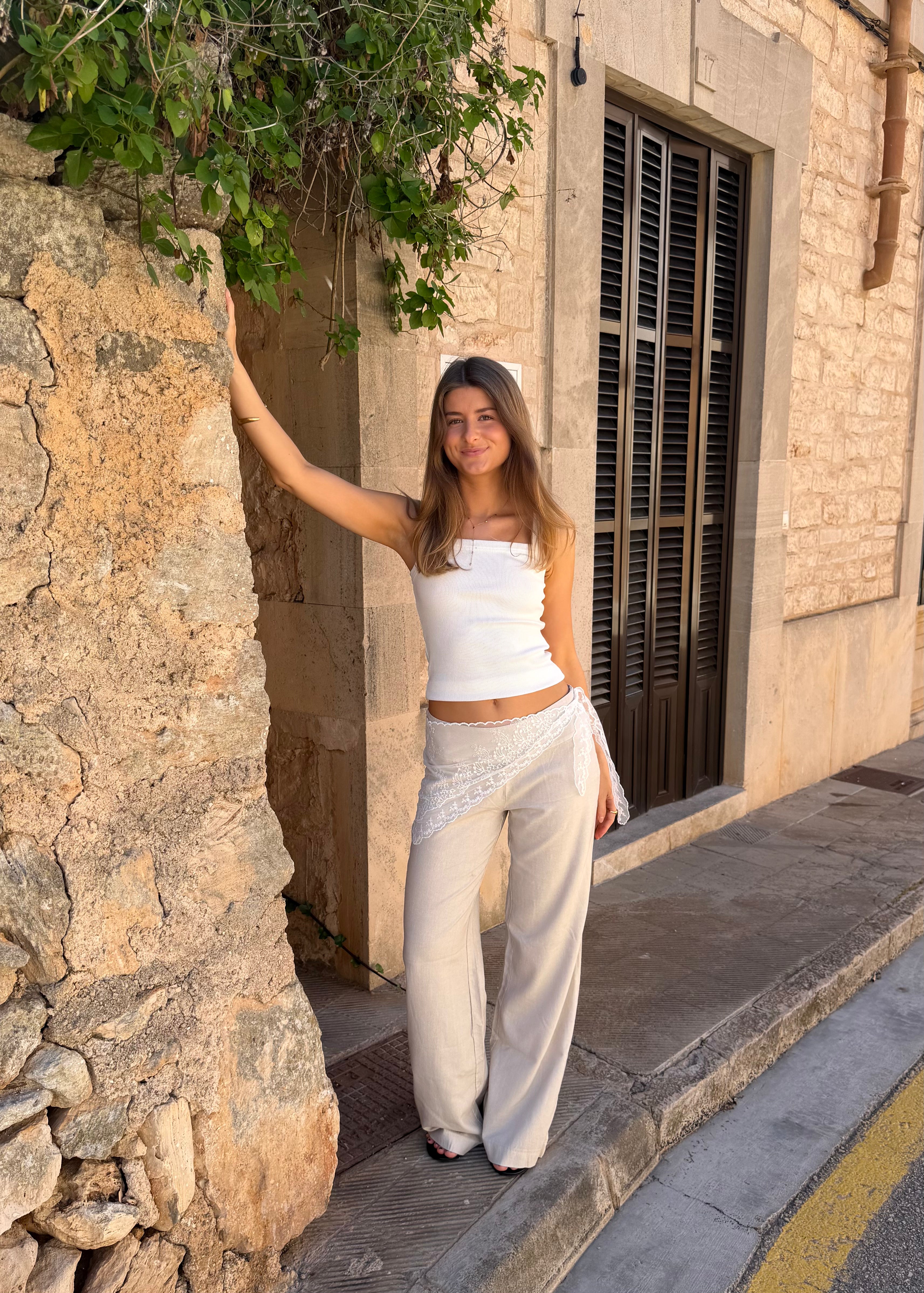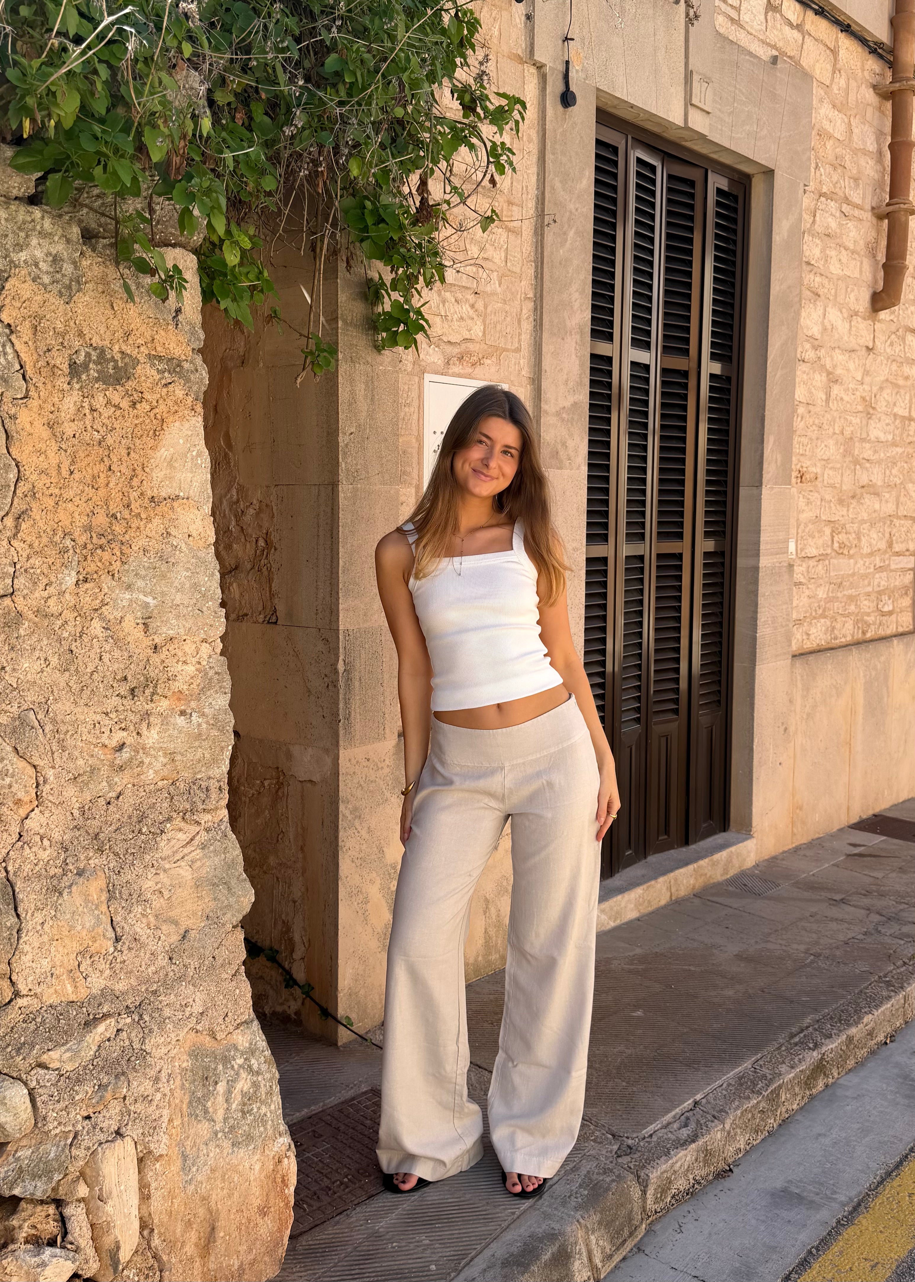 Low Waist Hørbukser - Beige