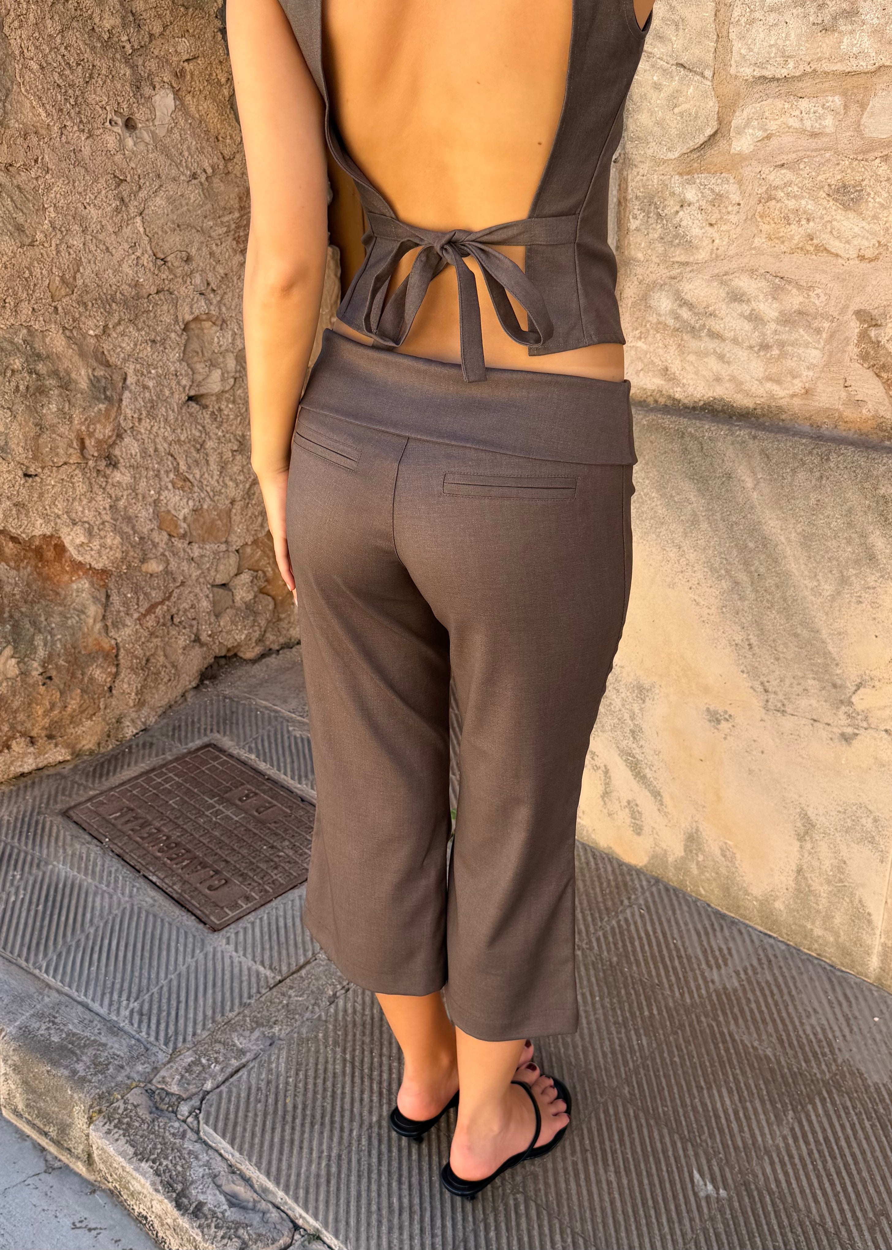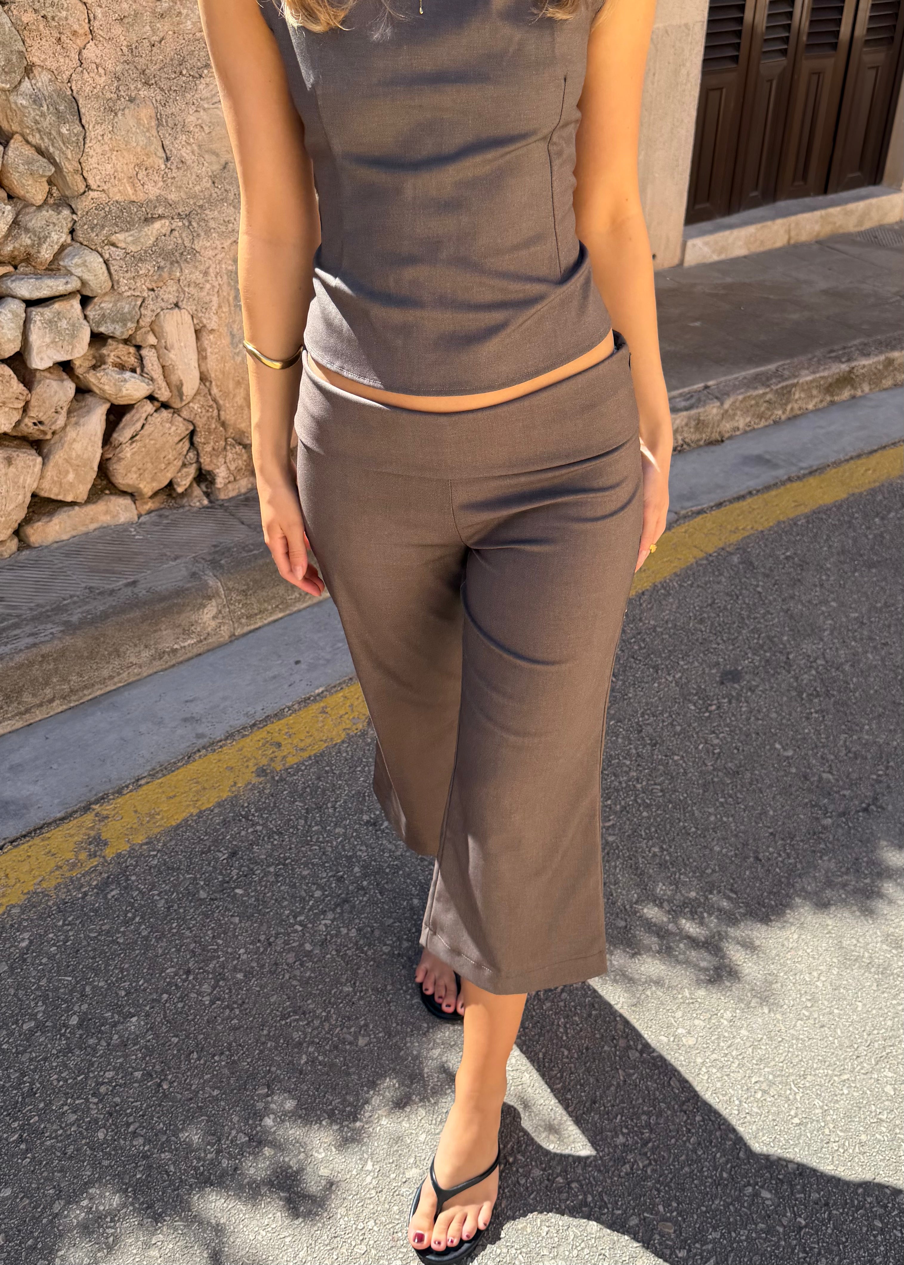 Low Waist Capribukser - Mørkebrun - ByStenholt.dk