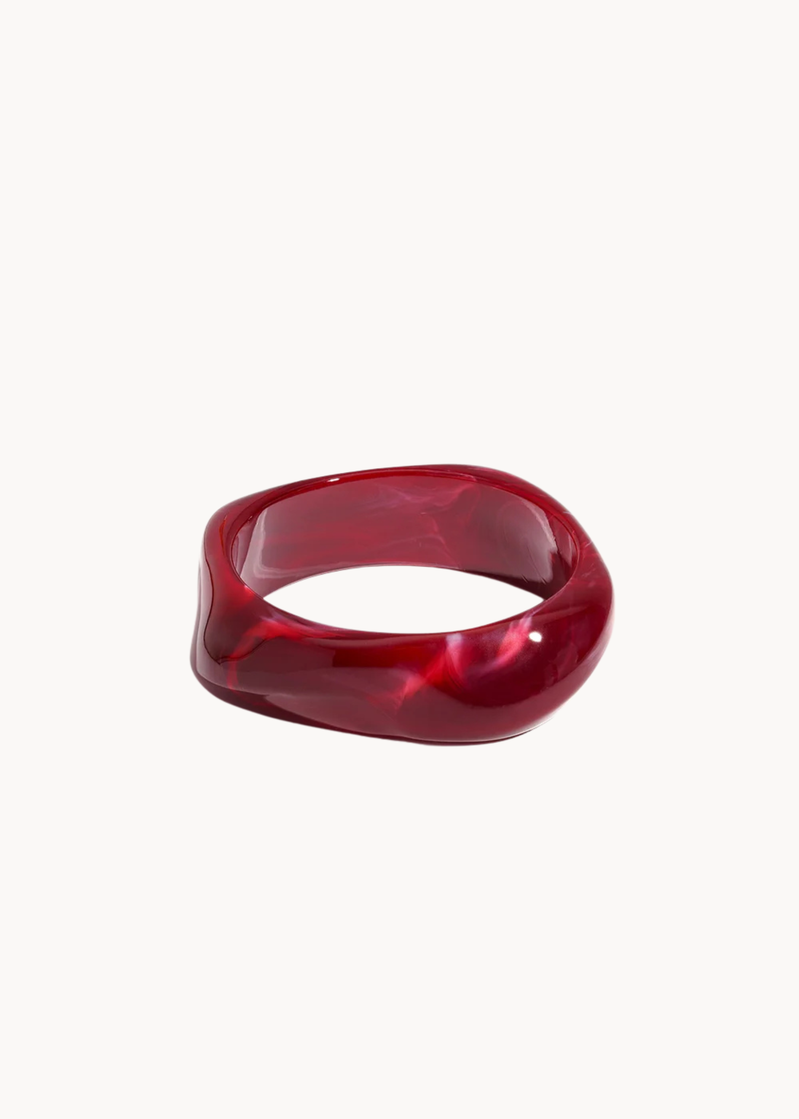 Vores Ruby Chunky Bangle har en smuk, dyb rød farve med et let marmoriseret spil, der giver armbåndet et eksklusivt og moderne udtryk. Den organiske, afrundede form gør det behageligt at bære og let at style - både alene som et statementpiece eller stacket med flere bangles for et mere personligt og iøjnefaldende look.