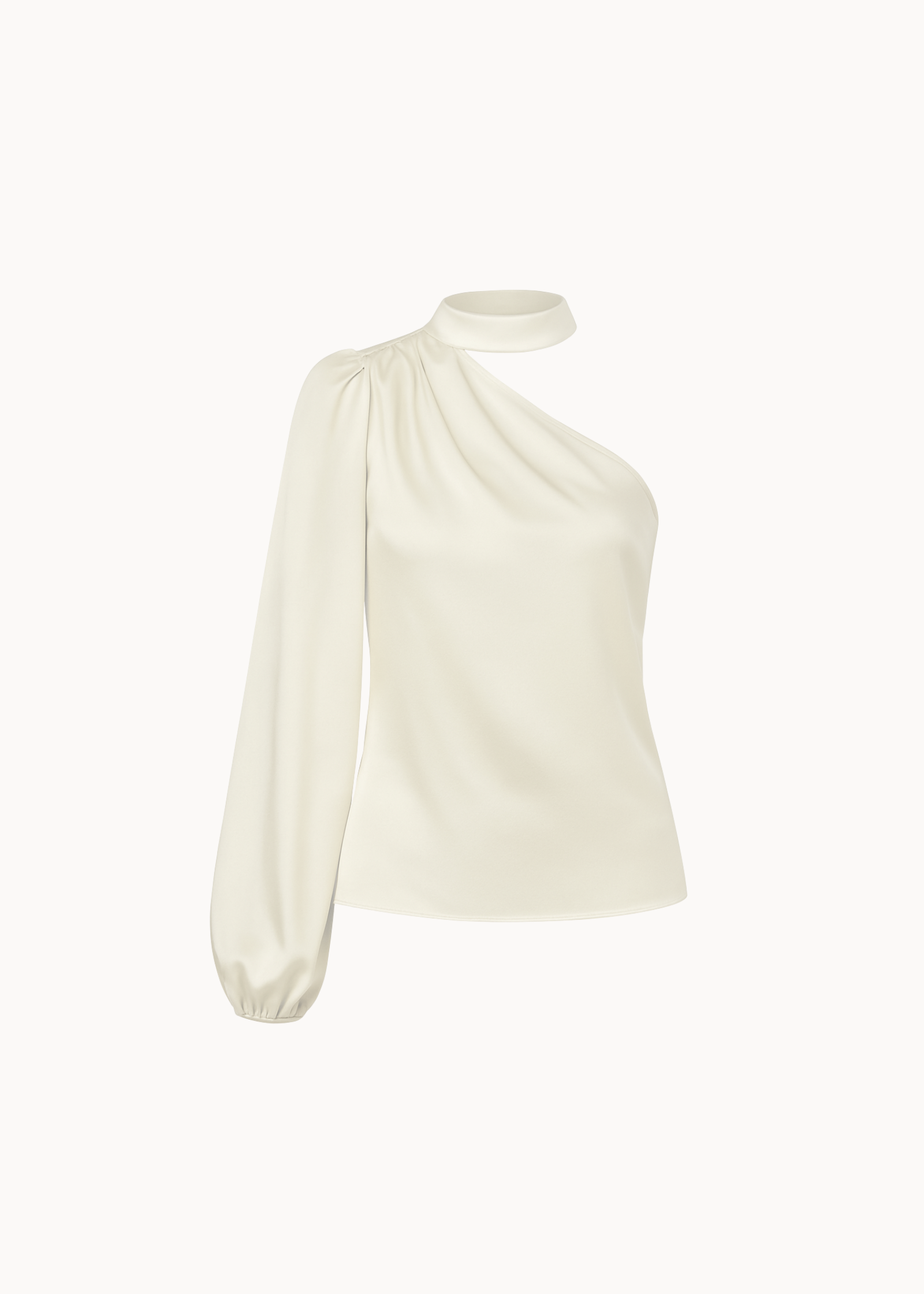 Satin One Shoulder Bluse er den perfekte top, når du vil gøre lidt ekstra ud af dit look. Den asymmetriske pasform med én lang ærme skaber et smukt, edgy udtryk, mens den høje hals giver et sofistikeret touch. Det glatte satinstof falder flot og giver et luksuriøst shine, der passer perfekt til både fest og aftenarrangementer🌟