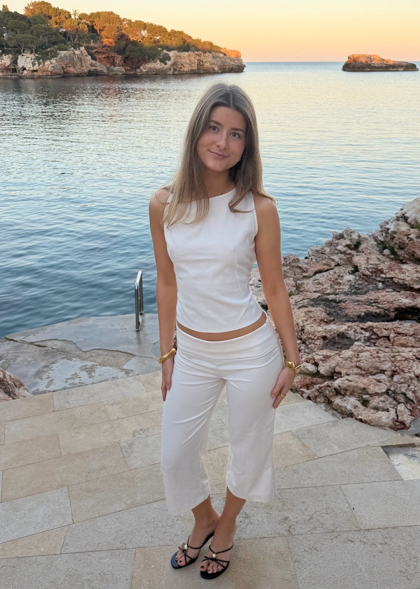 Capribukserne har en flatterende pasform med lige ben og en klassisk capri-længde. Det brede taljebånd giver et stilrent og elegant udtryk, som gør sættet nemt at style til både hverdag og mere dressede anledninger 🤍✨