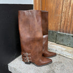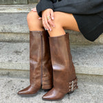 Vores nye Sophia Folded Spænde Støvle er i imiteret læder med foldet skaft og dekorative spænder, der giver et råt og stilrent udtryk. Komfortabel pasform og slidstærke materialer sikrer, at de både ser godt ud og holder hele sæsonen.🤎