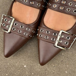 Vores Zara Slingbacks er et par flade slingbacks med justerbar rem og to chunky spænder. De er perfekte til en bytur, men med deres komfortable fit og stilet look, kan de også pifte hverdags outfittet op🖤⚡️